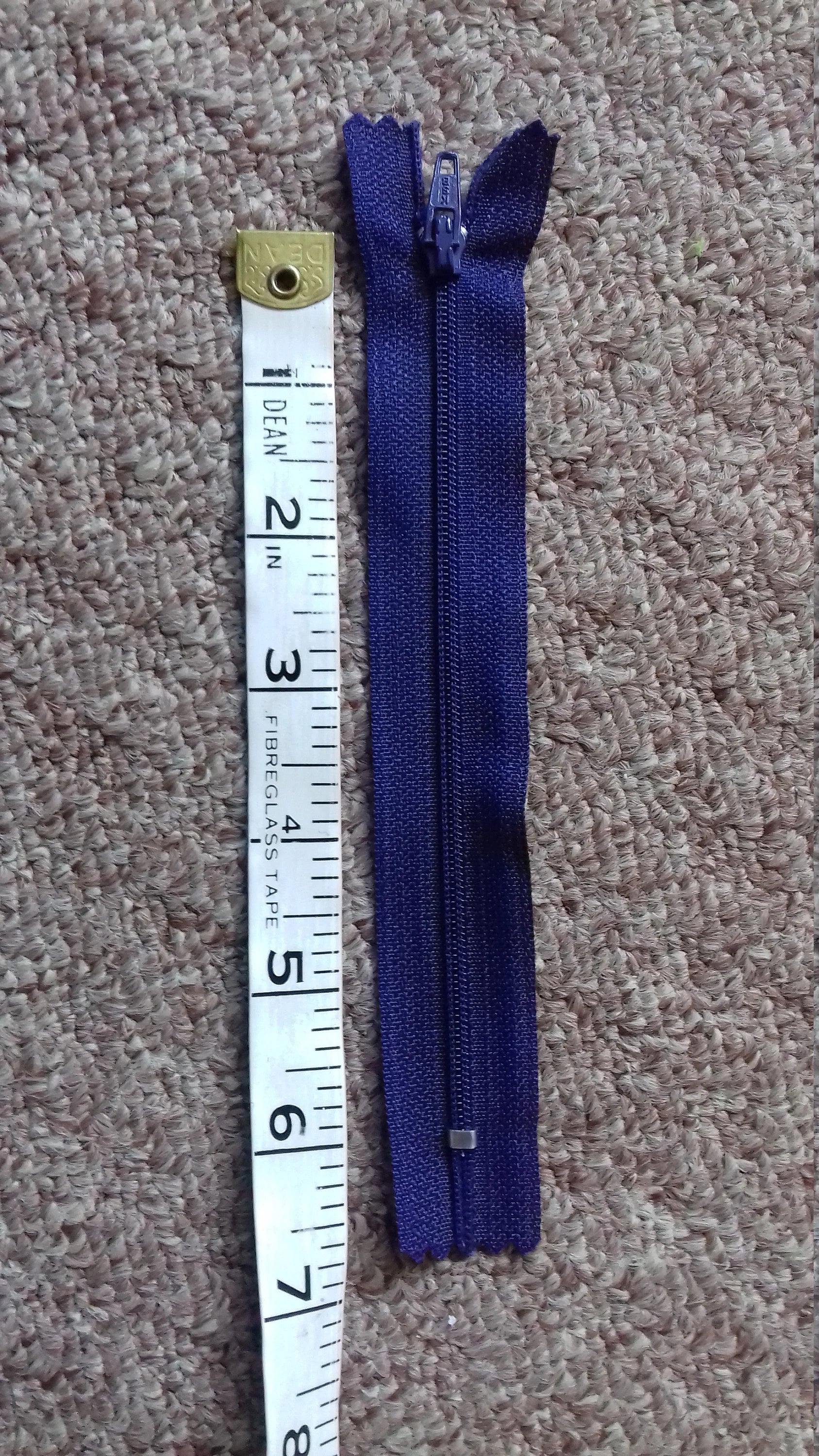 These zips are brand new. This one is purple 6 inches (zip part only), with nylon teeth and metal zipper and ends.