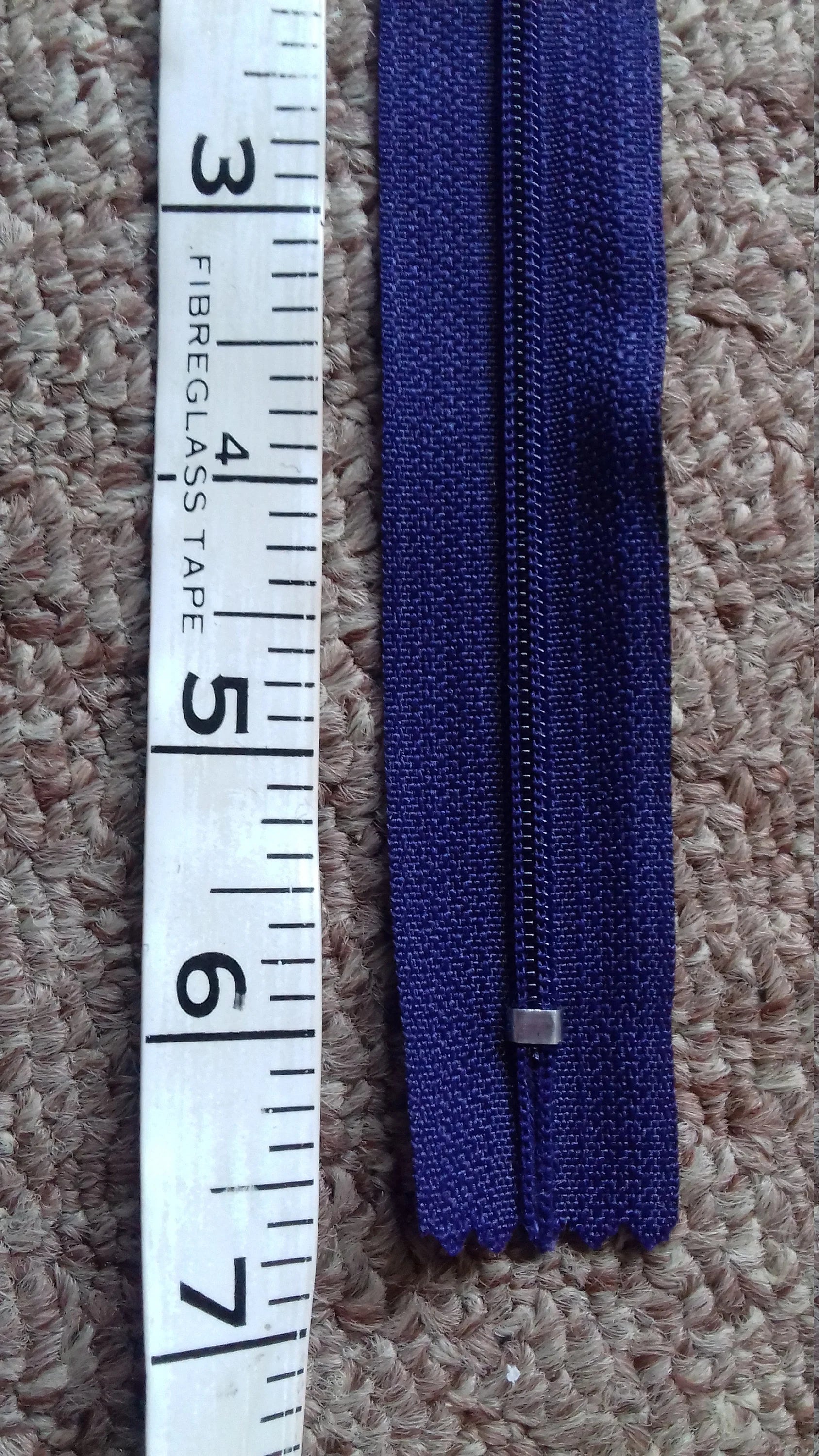Purple nylon zip 6 inch (15cm) closed end