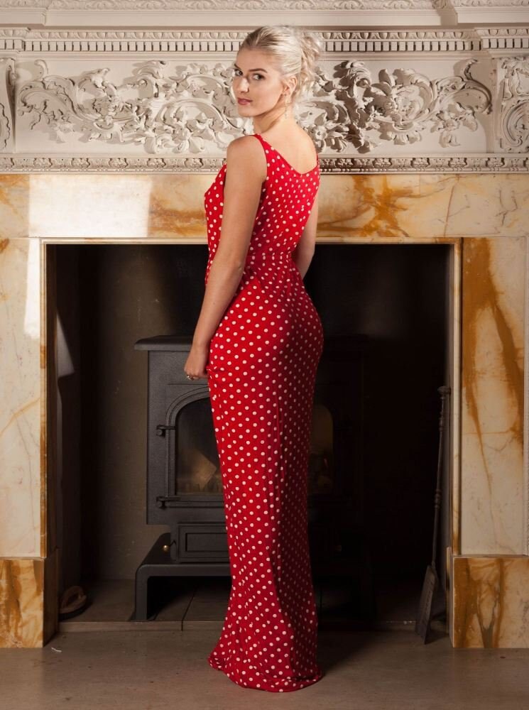 Red Polka Dot Retro Maxi Dress Up To UK10