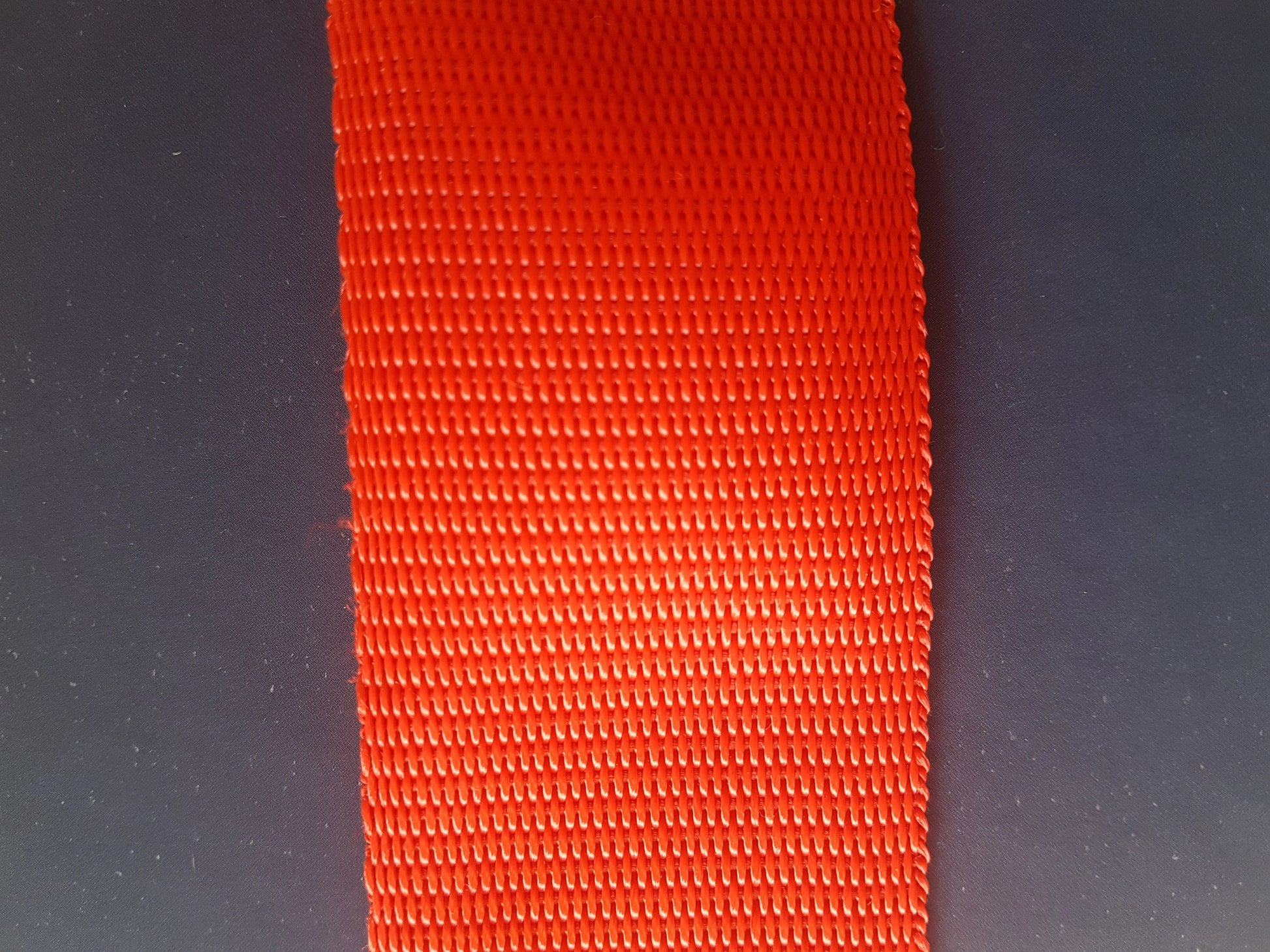 I have here red heavy duty polyester webbing which is 5cm wide. Multiple purchases will be sent as one uncut length.
