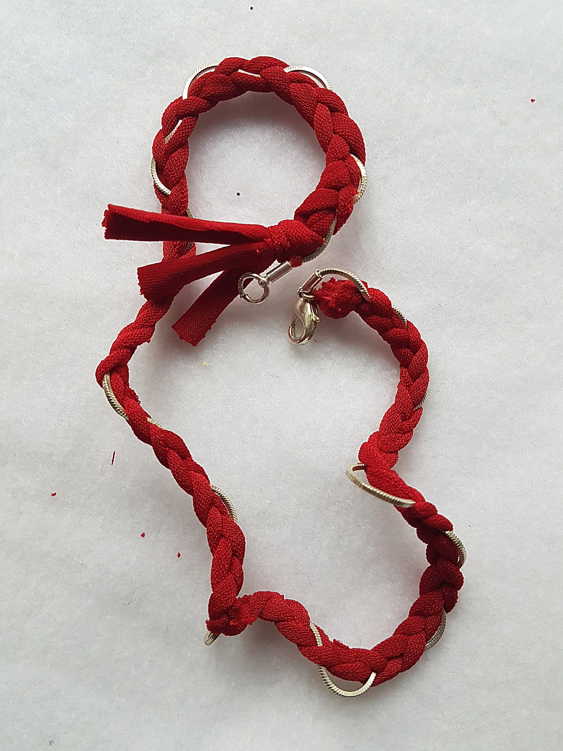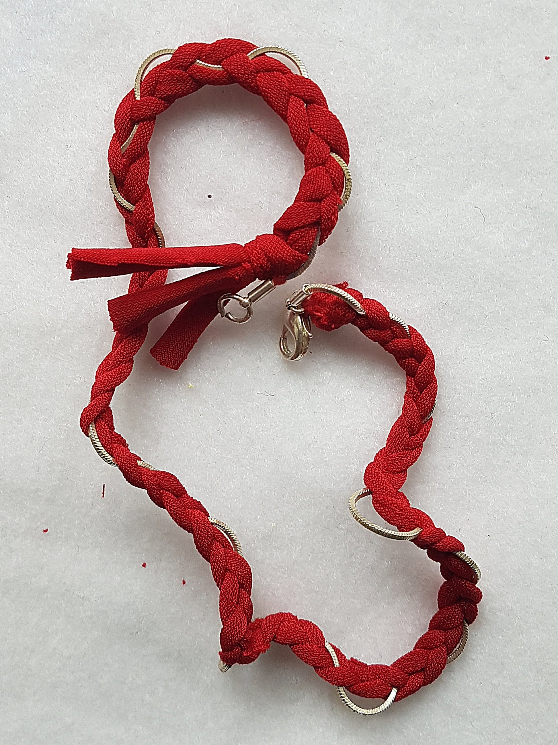 Red Silver Chain Braided Wrap Bracelet
