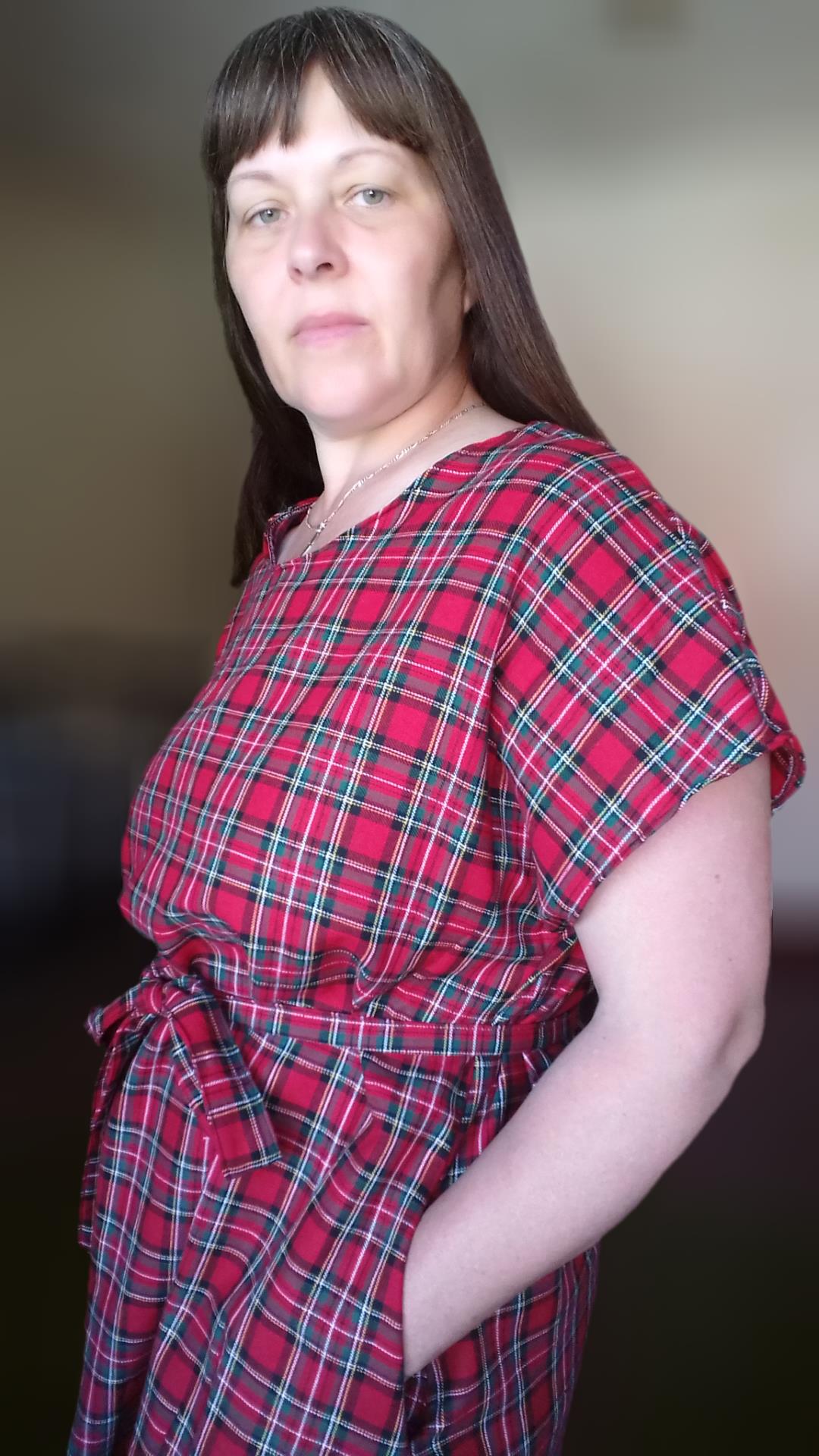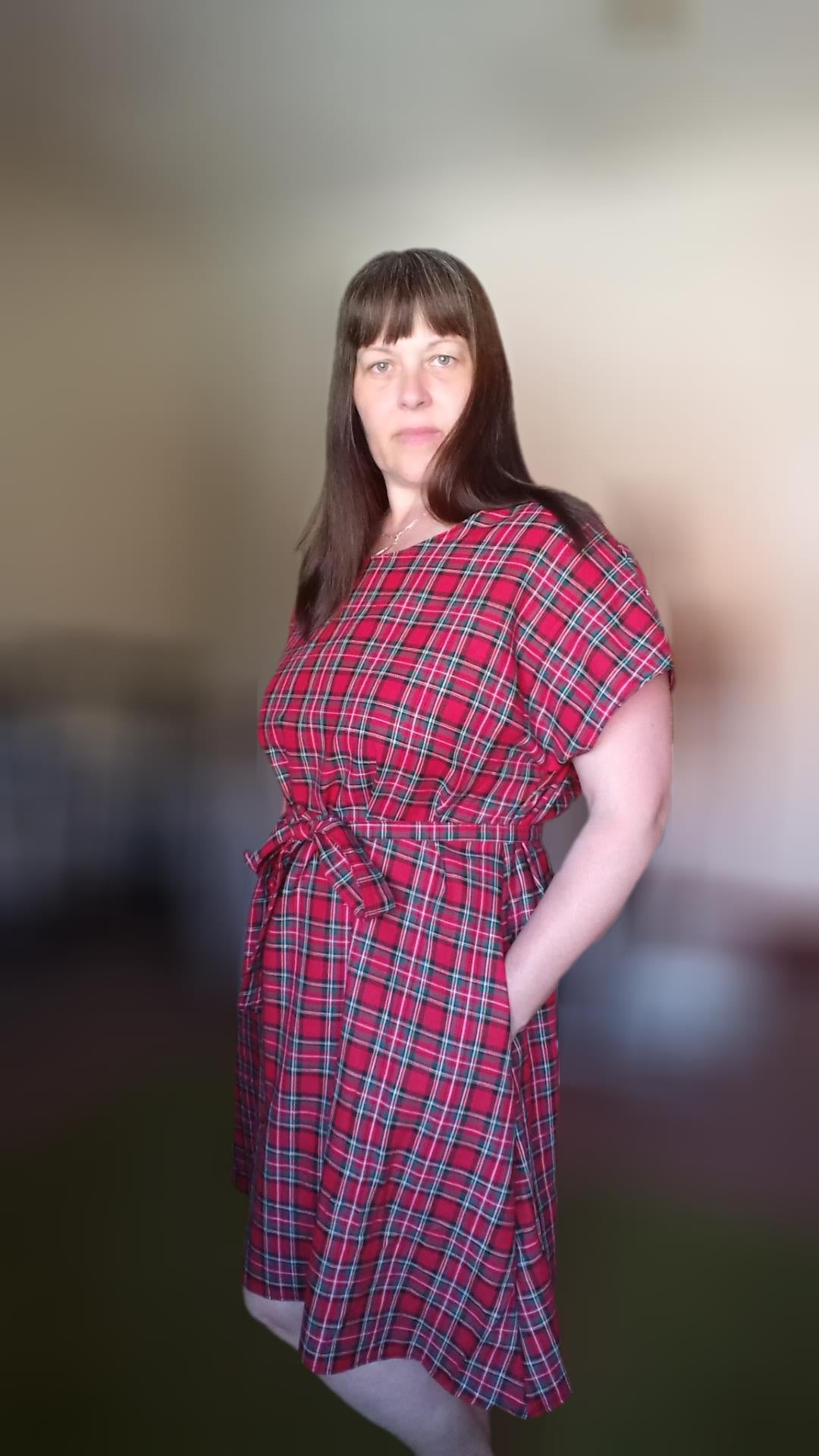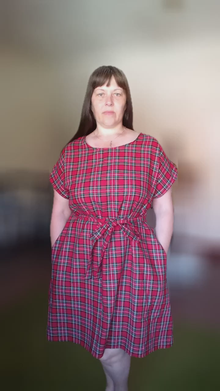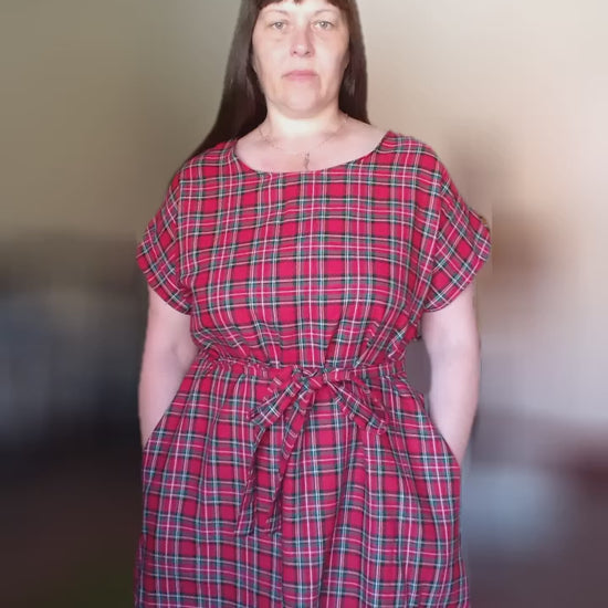 Relaxed Fit T Shirt Dress - Red Tartan UK 14