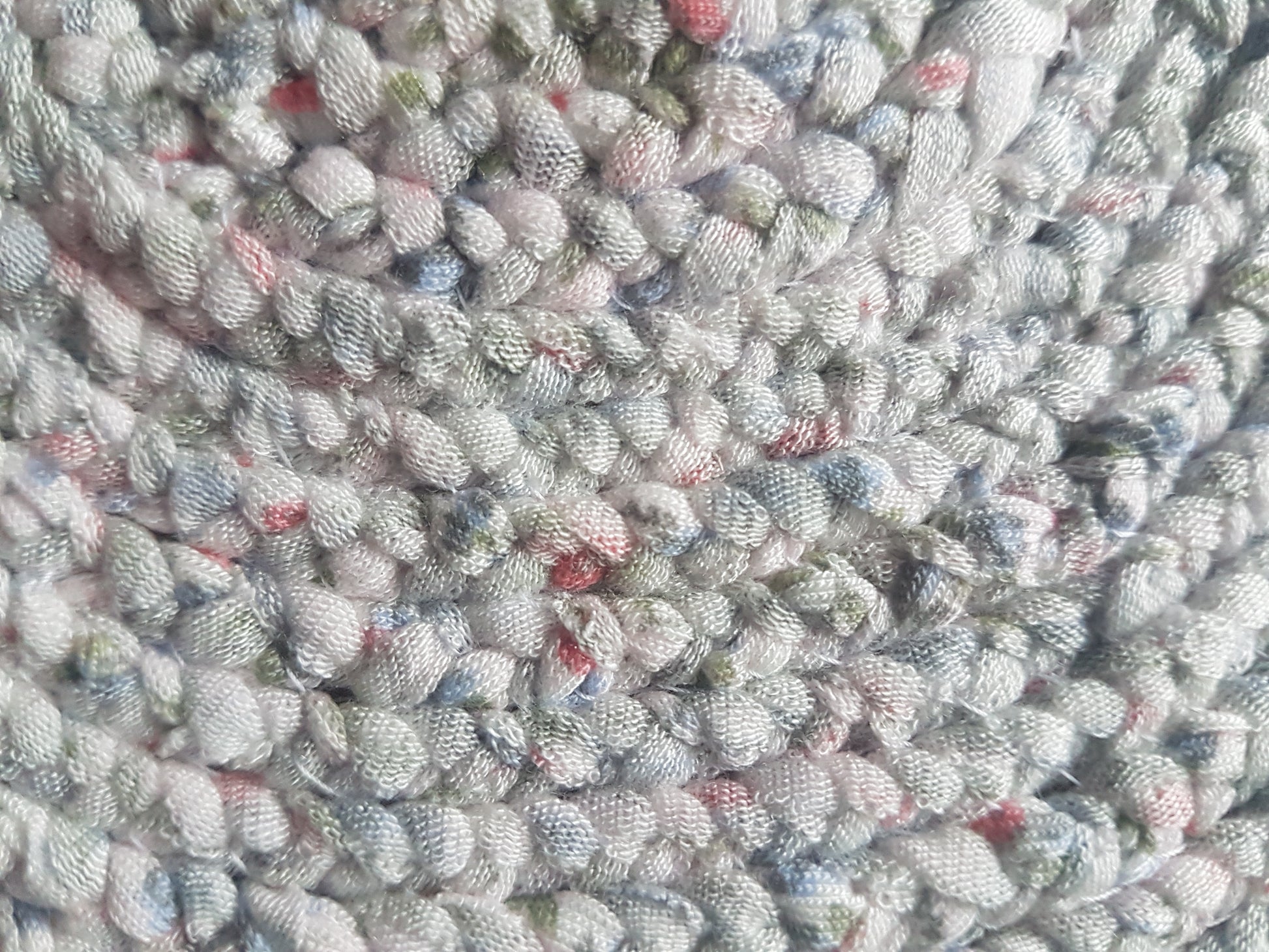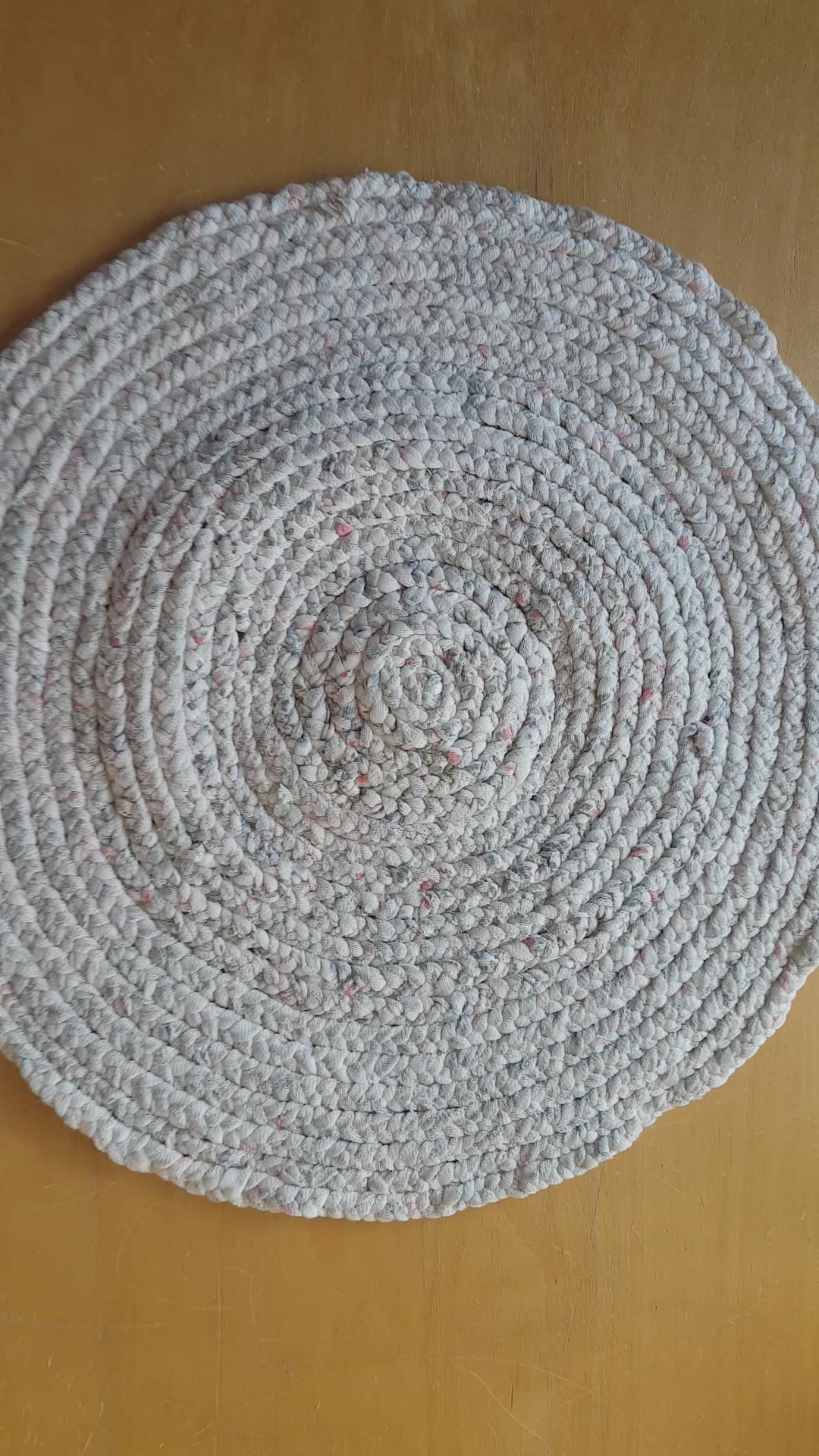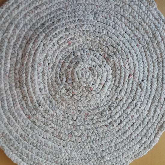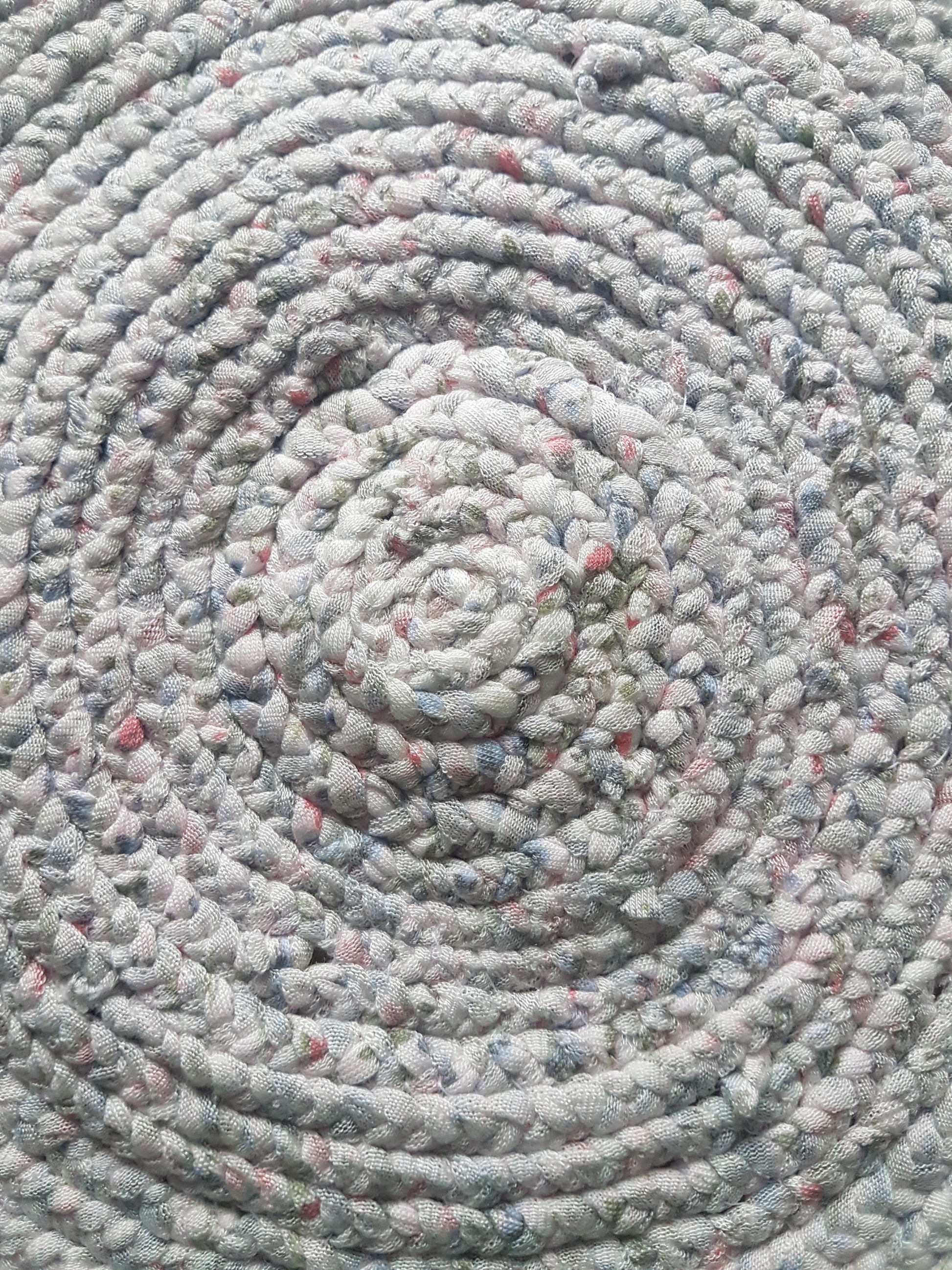 Up for sale here is a single hand-braided coaster place mat made with a floral print fabric recycled from my design studio, braided and stitched together into a round coaster.