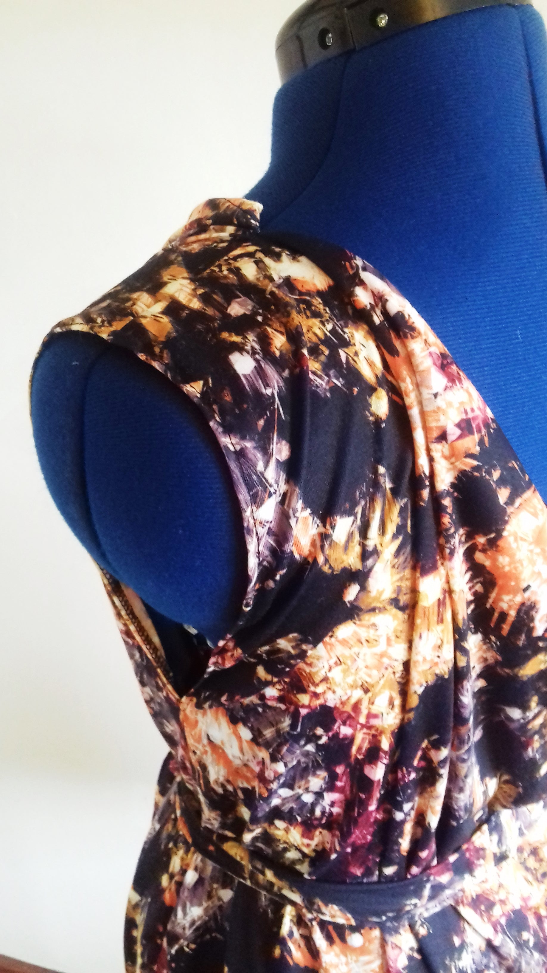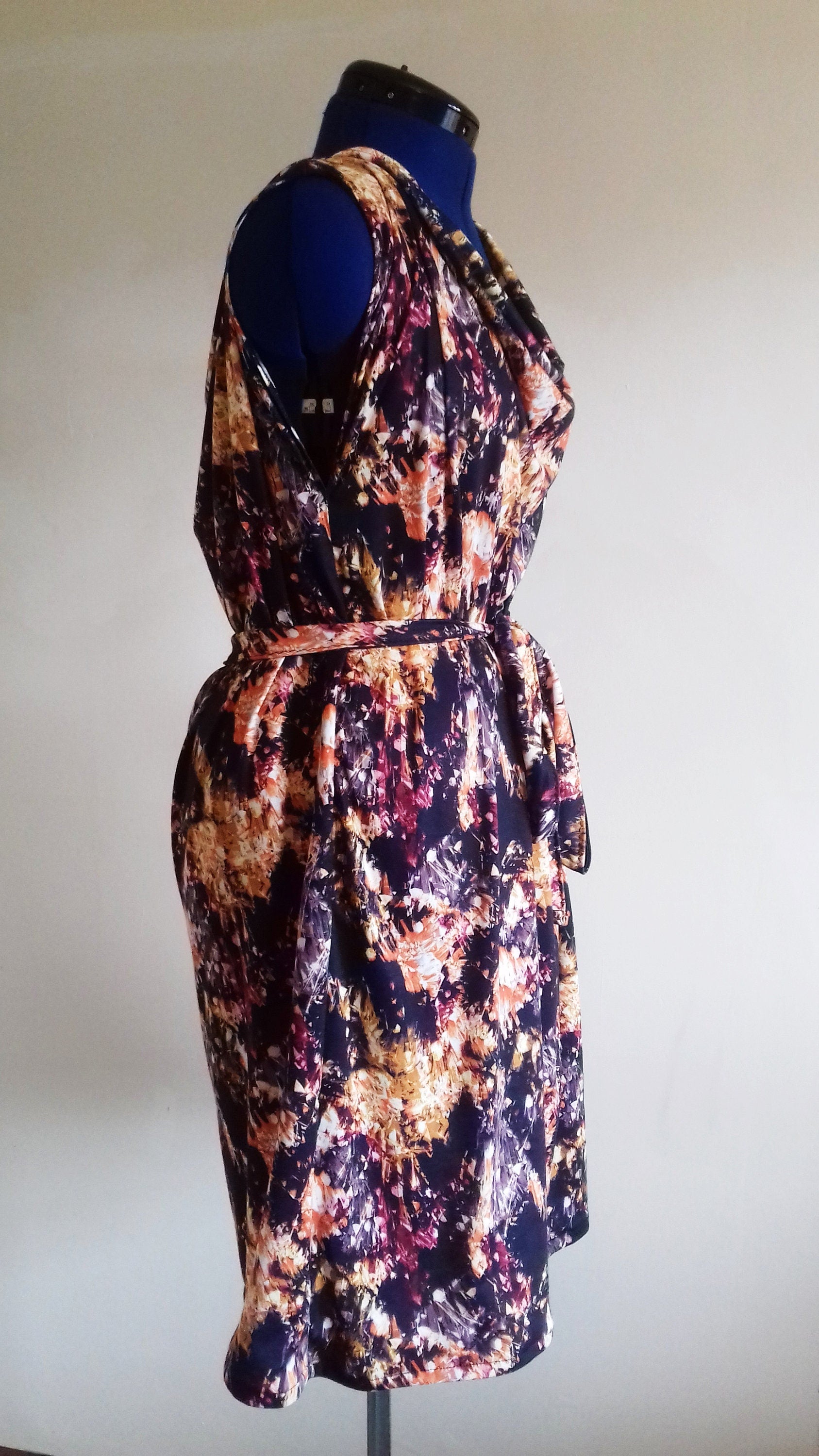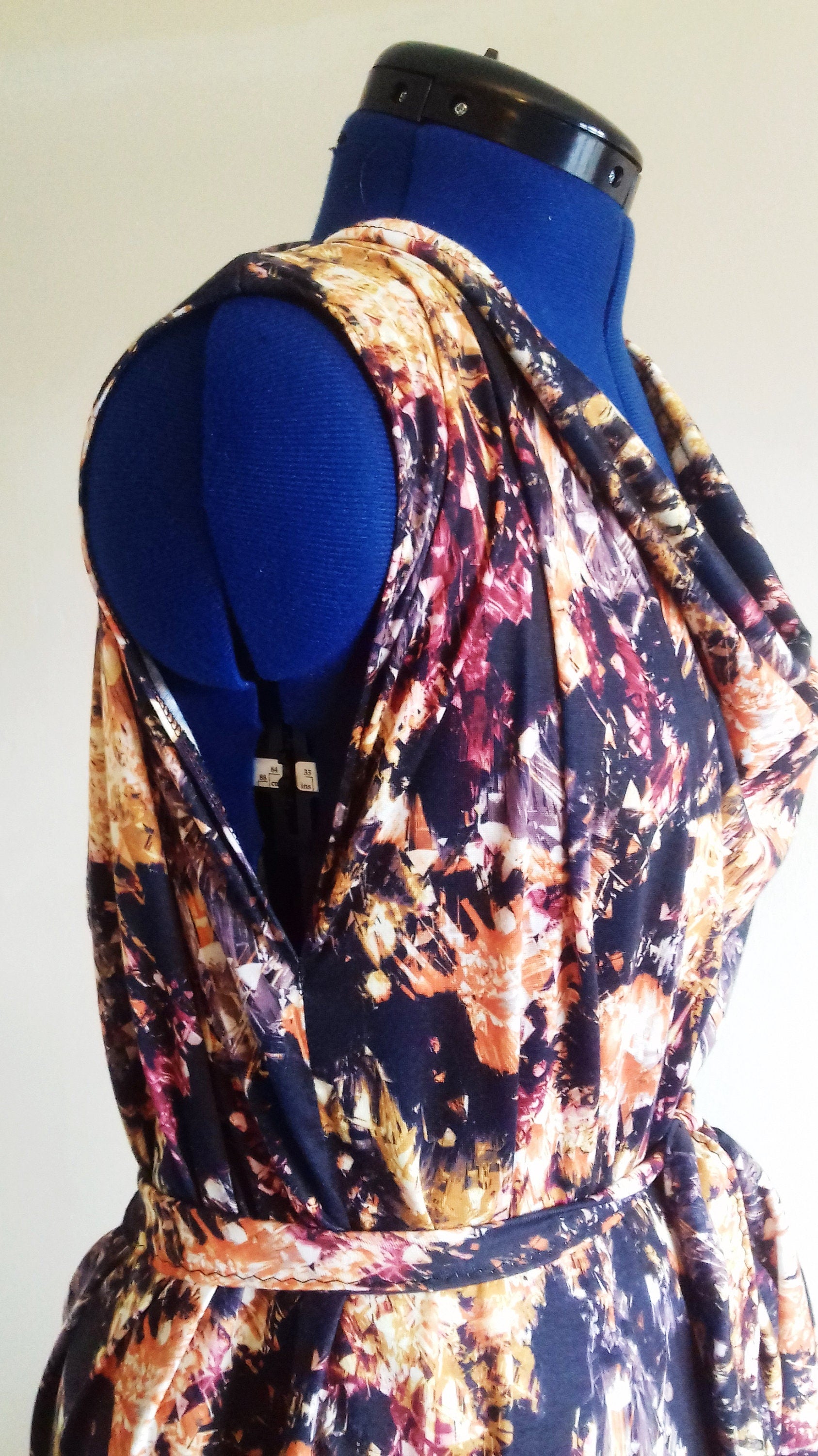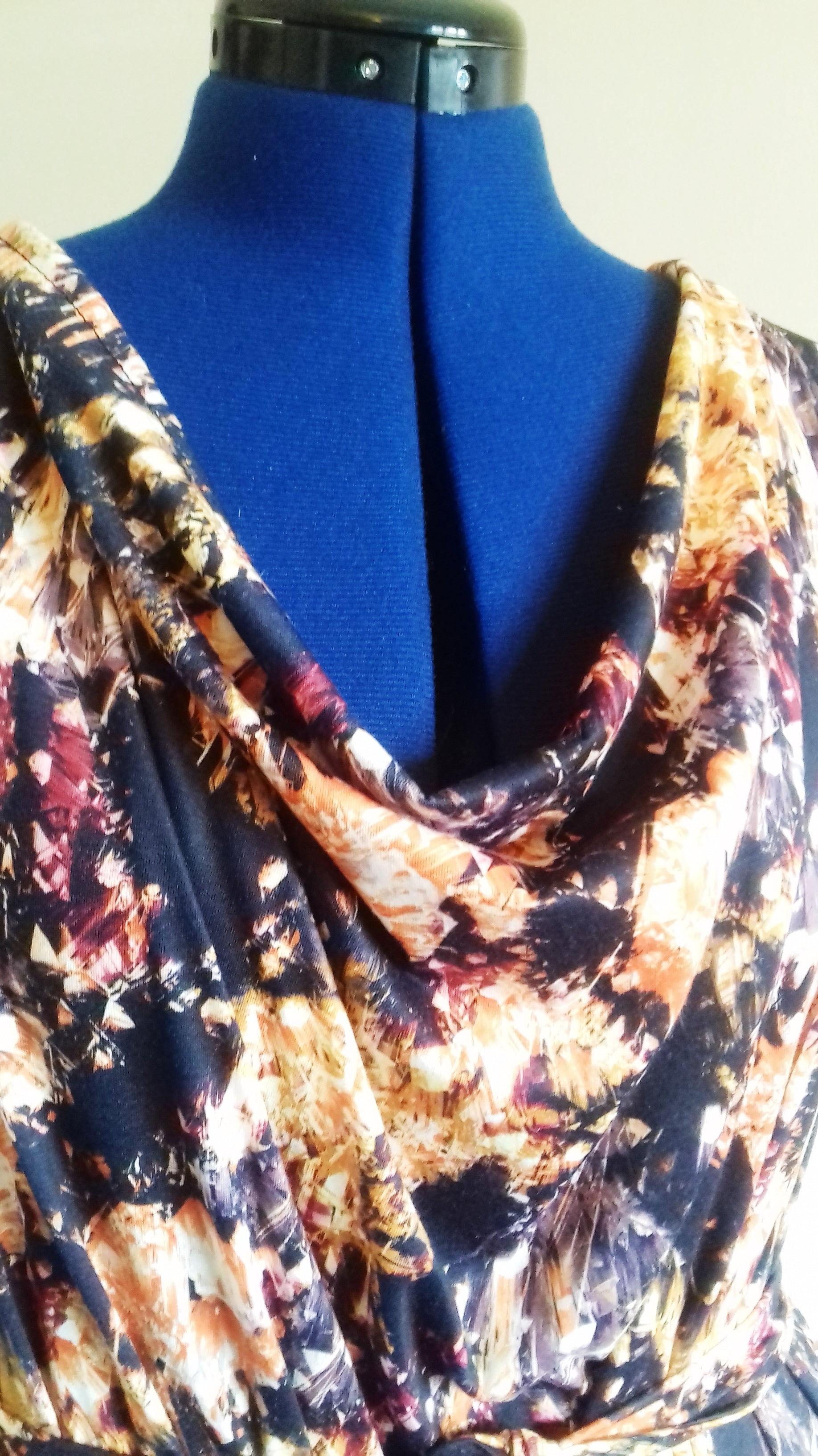 It comes with a long matching belt which fits at your natural waistline. This dress also features a cowl neckline front and back making this a beautiful easy wear unique evening or day dress.