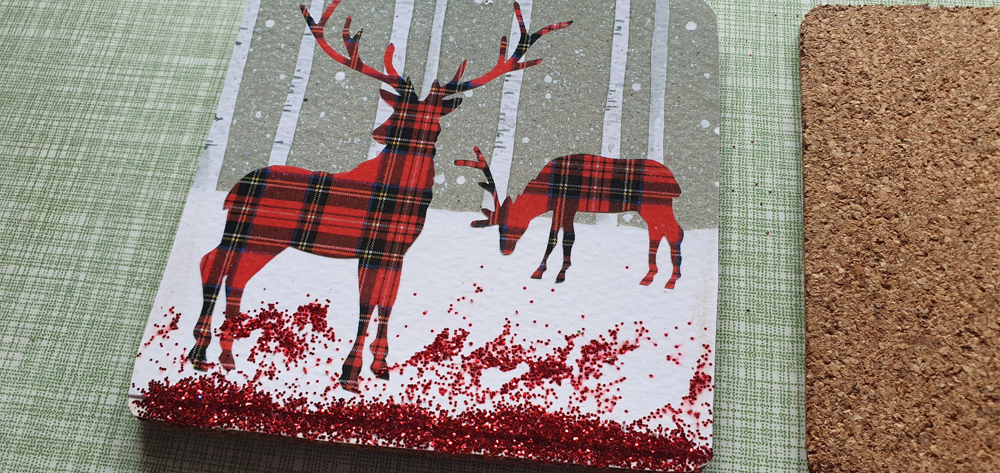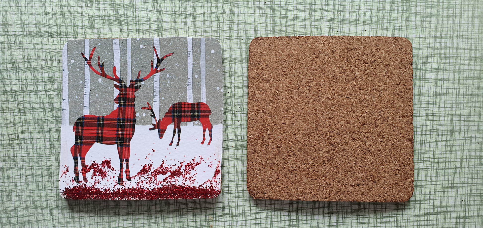 Single Mix And Match Coaster Christmas Winter Red Tartan Deer Glitter Home Decor Gift