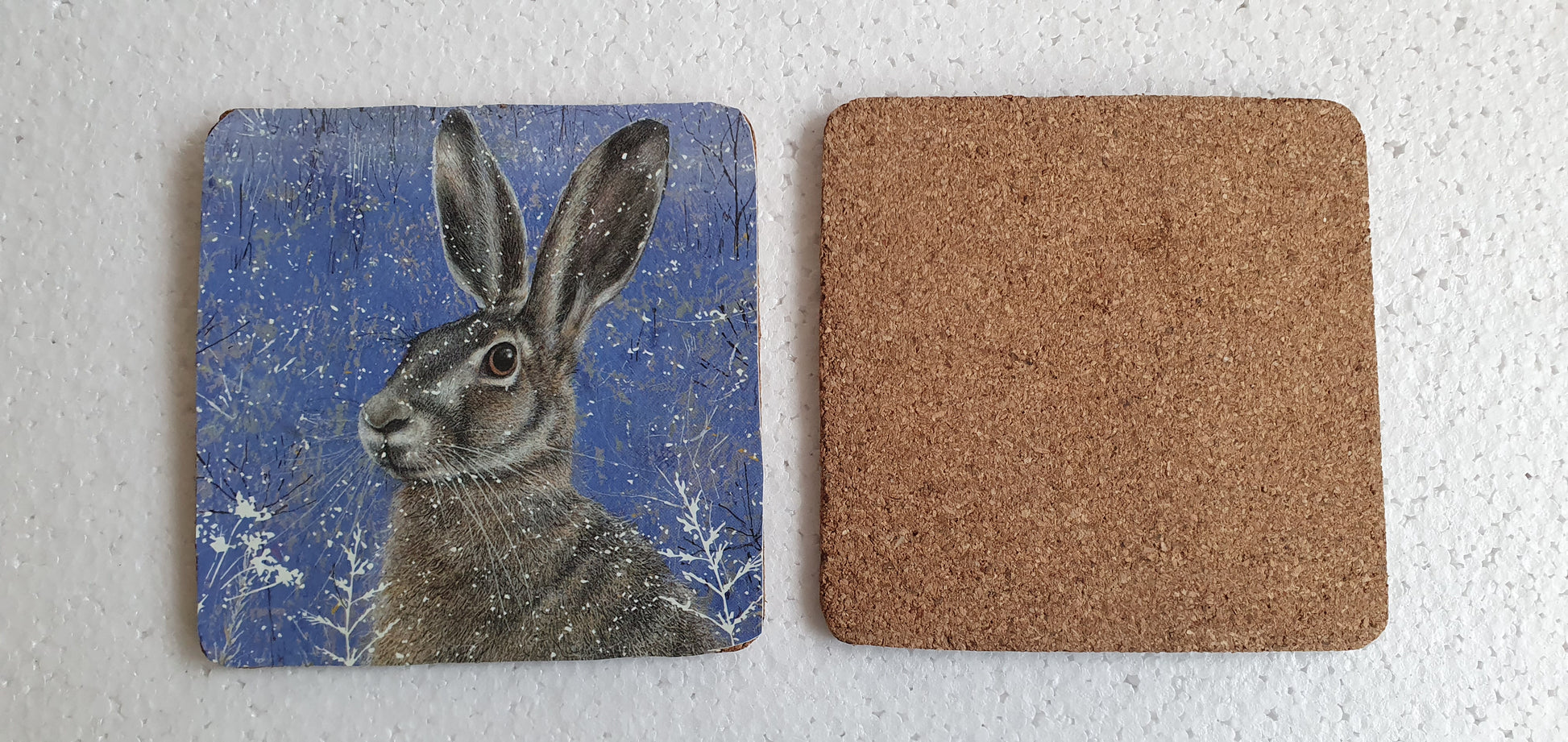 Single Mix And Match Coaster Winter Hare Rabbit Blue Home Decor Gift