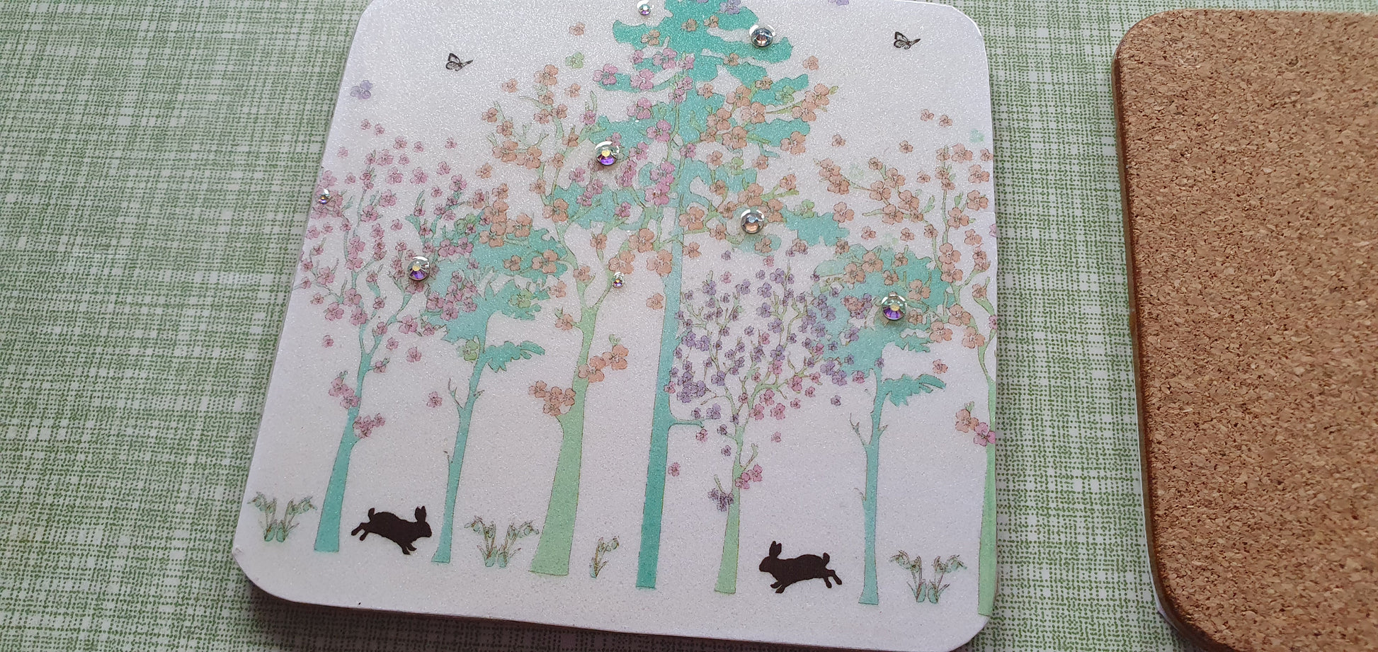 This single coaster has been hand decorated by me using decoupage in my studio using paper designs and then varnish sealed. It is also cork backed. It is a unique design and cannot be repeated.