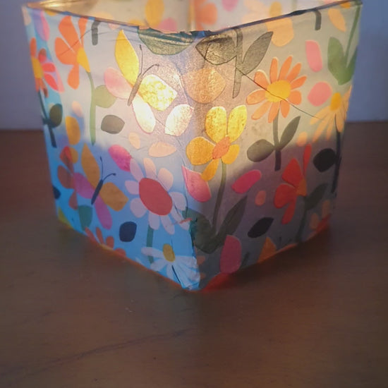 Small Blue Floral Hand Decorated Candle Tea Light Holder Home Decor Gift
