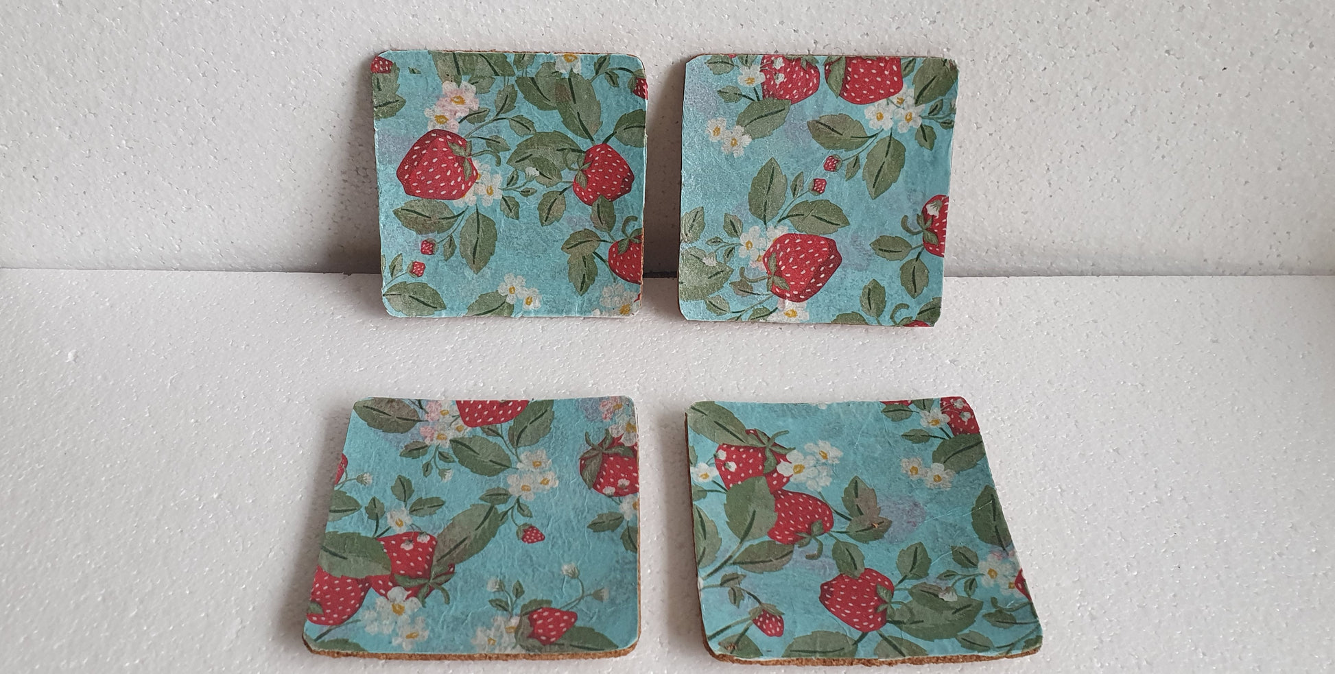Strawberries Decoupage Coasters Set Of Four Red Blue Home Decor Gift