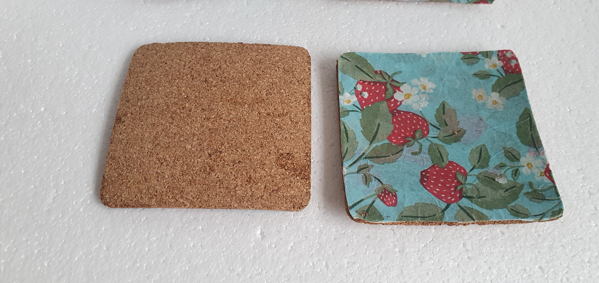 This set of four coasters have been hand decorated by me in my studio and varnish sealed. They are also cork backed. It is a unique design and size and cannot be repeated.