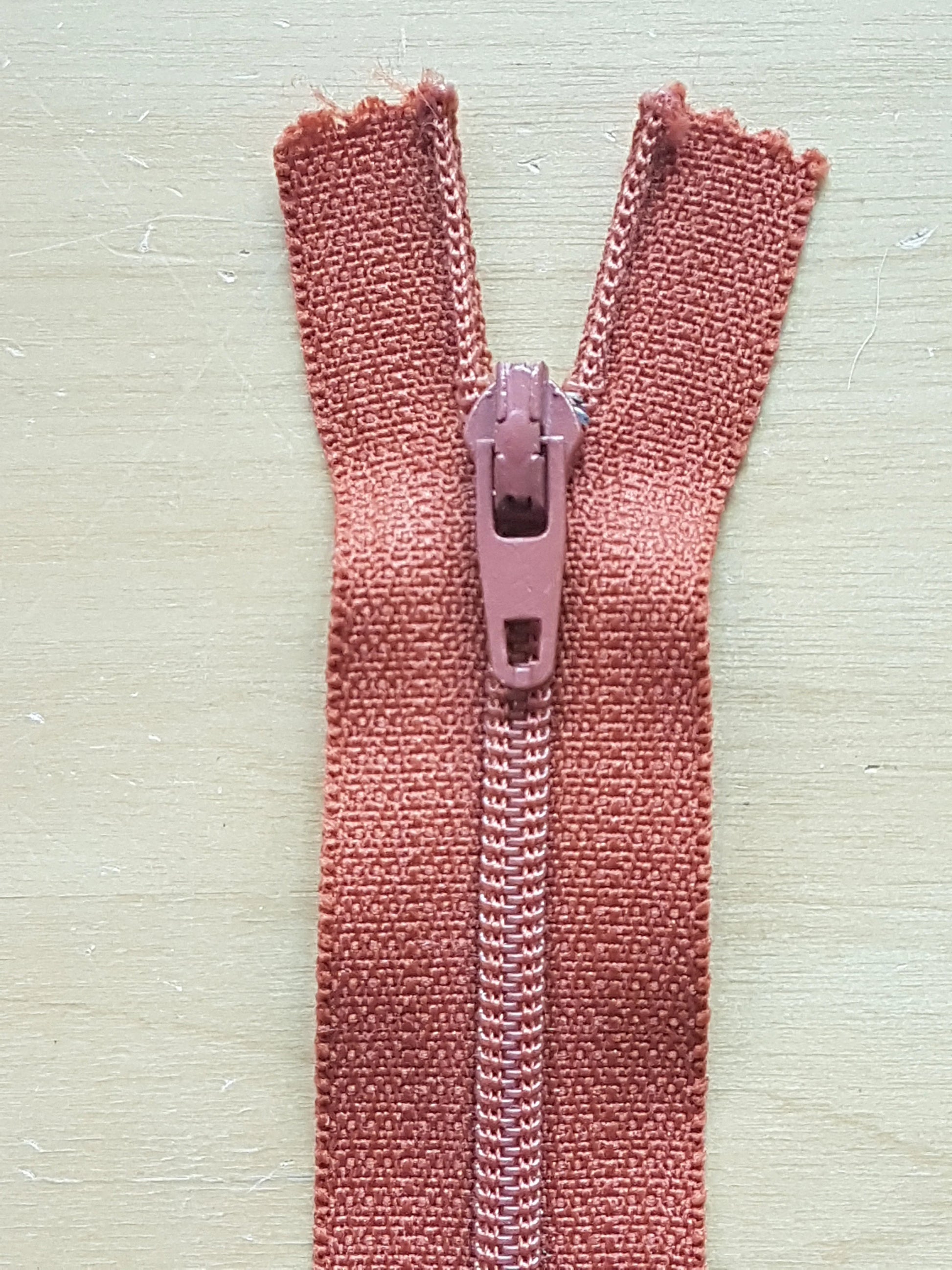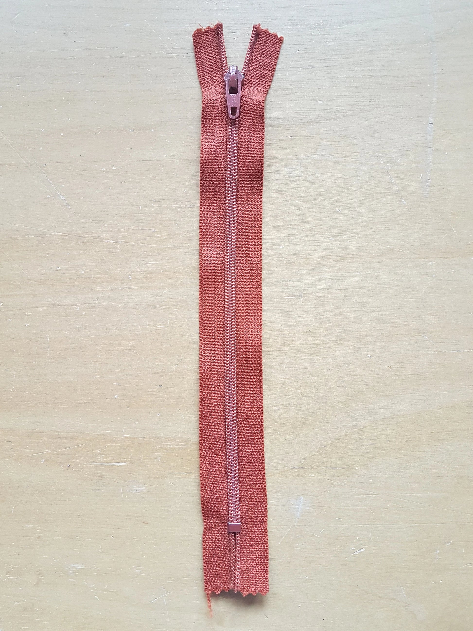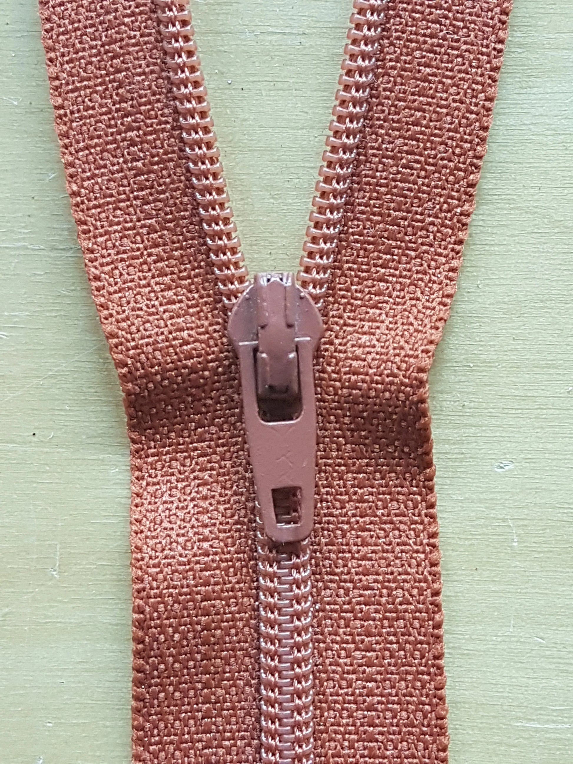 Terracotta orange brown zip nylon 7 inch (18cm) YKK closed end