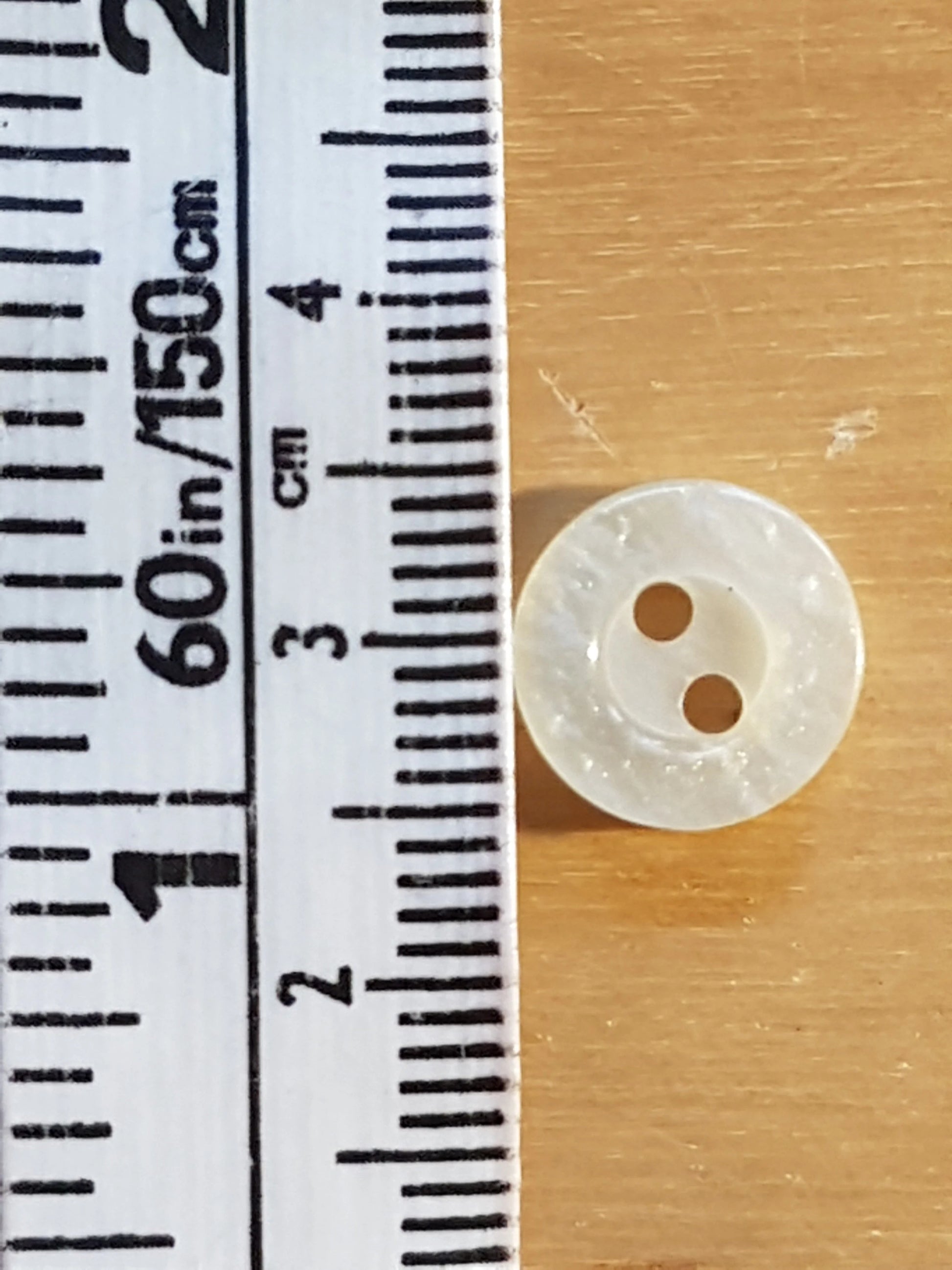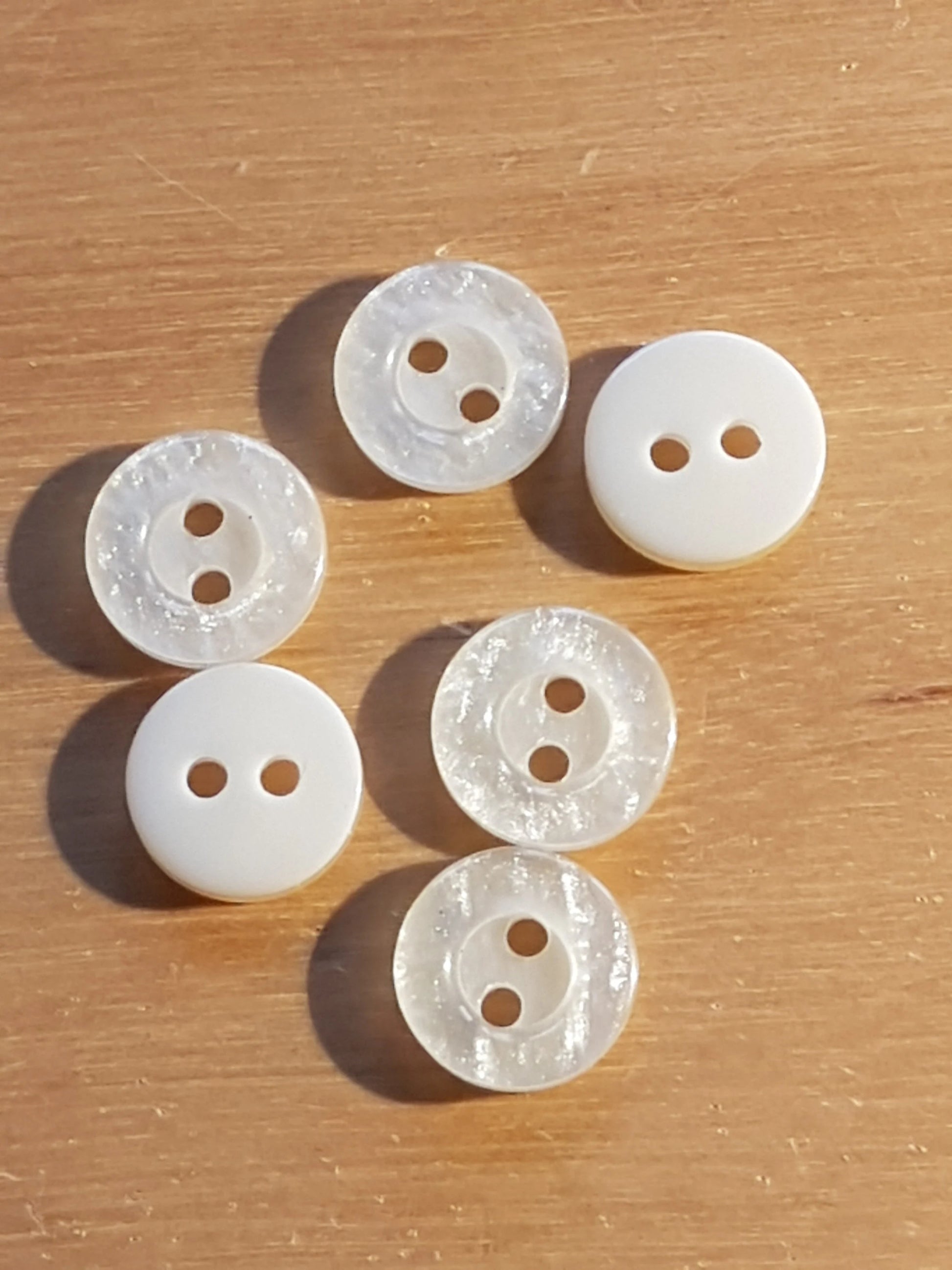 Up for sale here are 6 small round plastic cream/pearl buttons measuring 1cm.