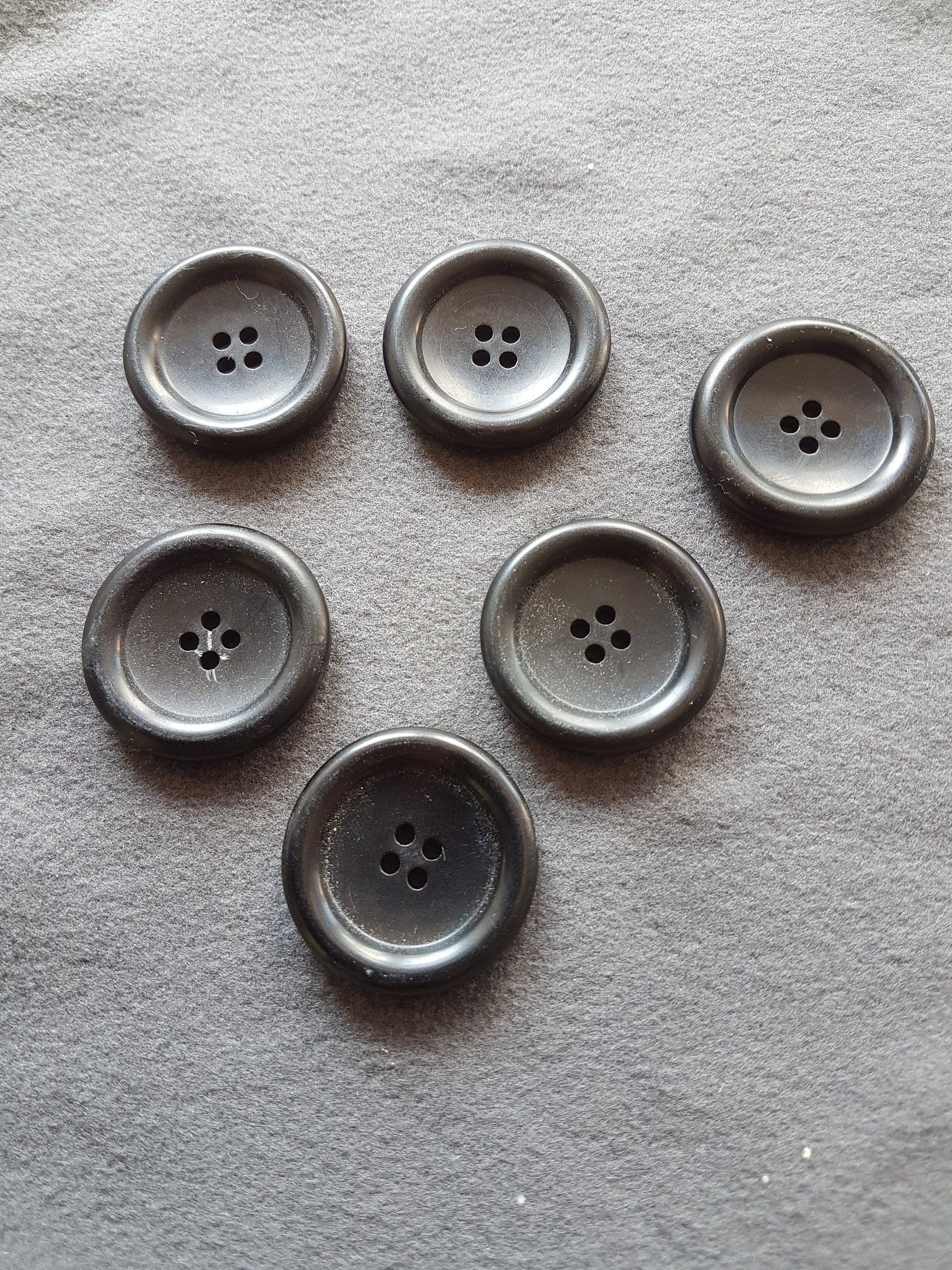 Vintage 6 Black Buttons Plastic 2.75cm
