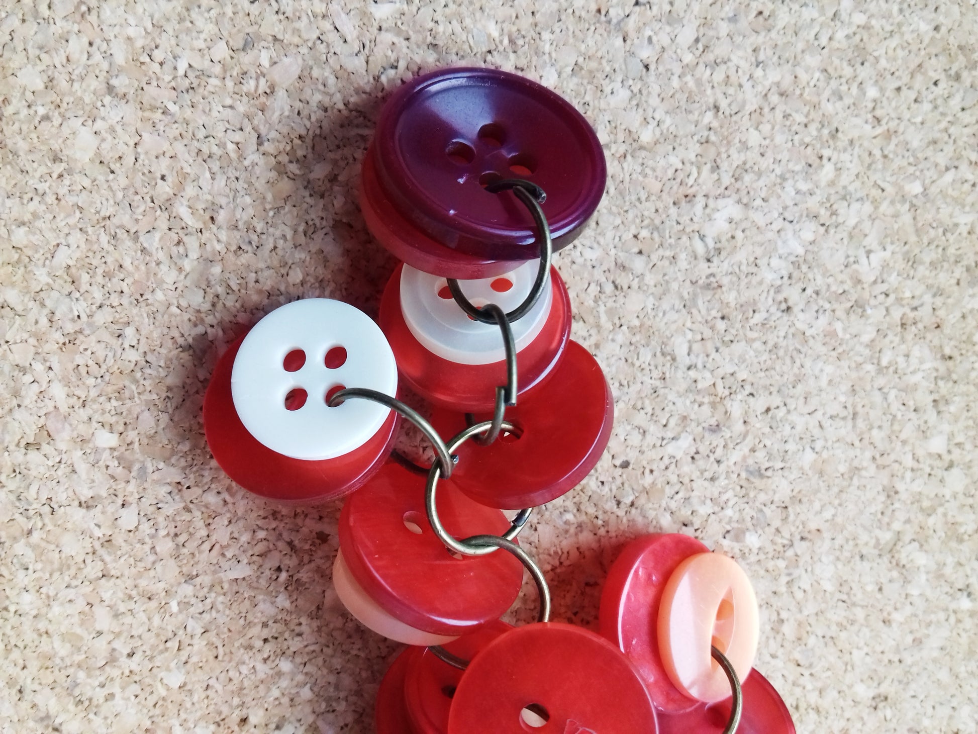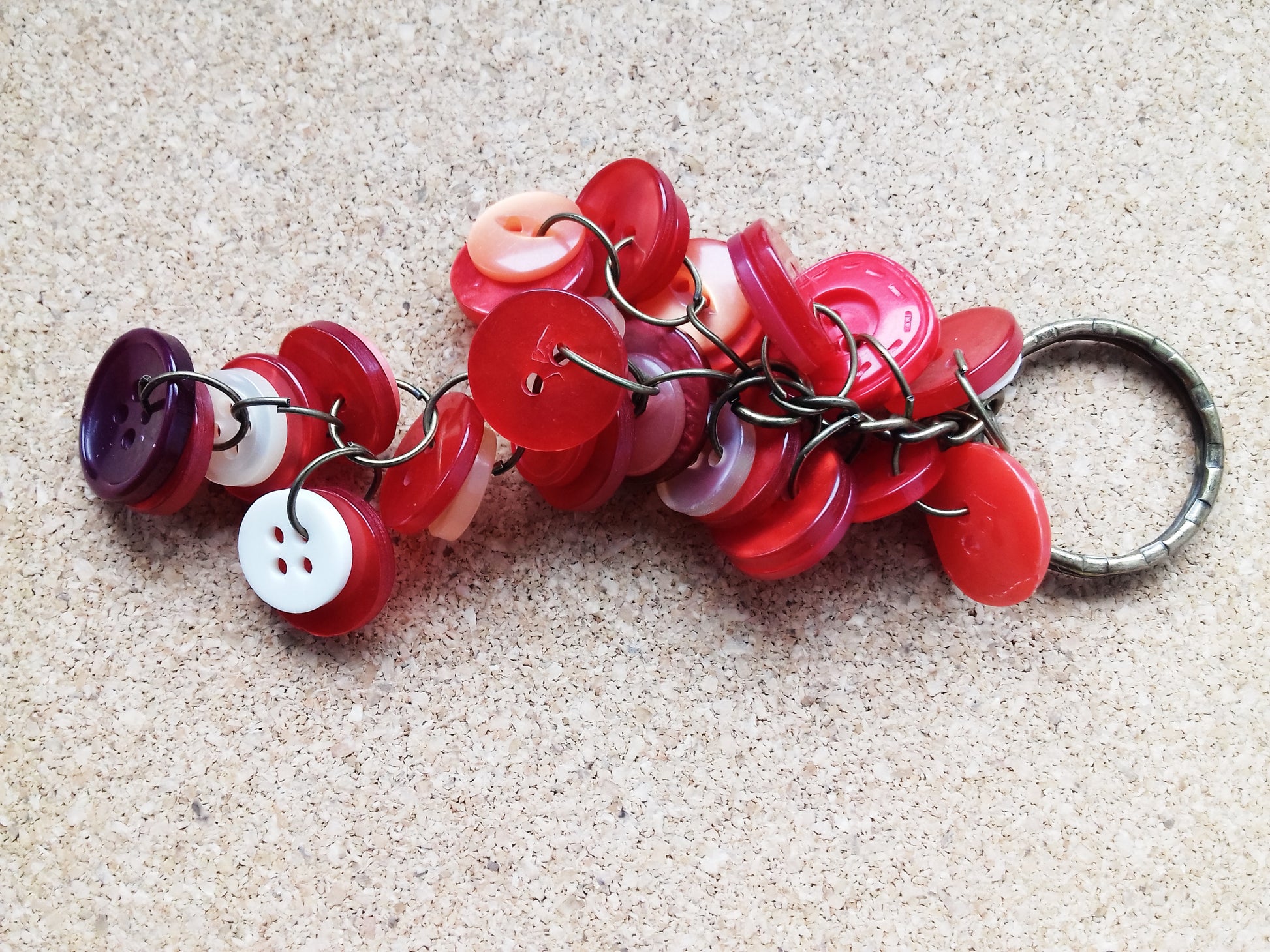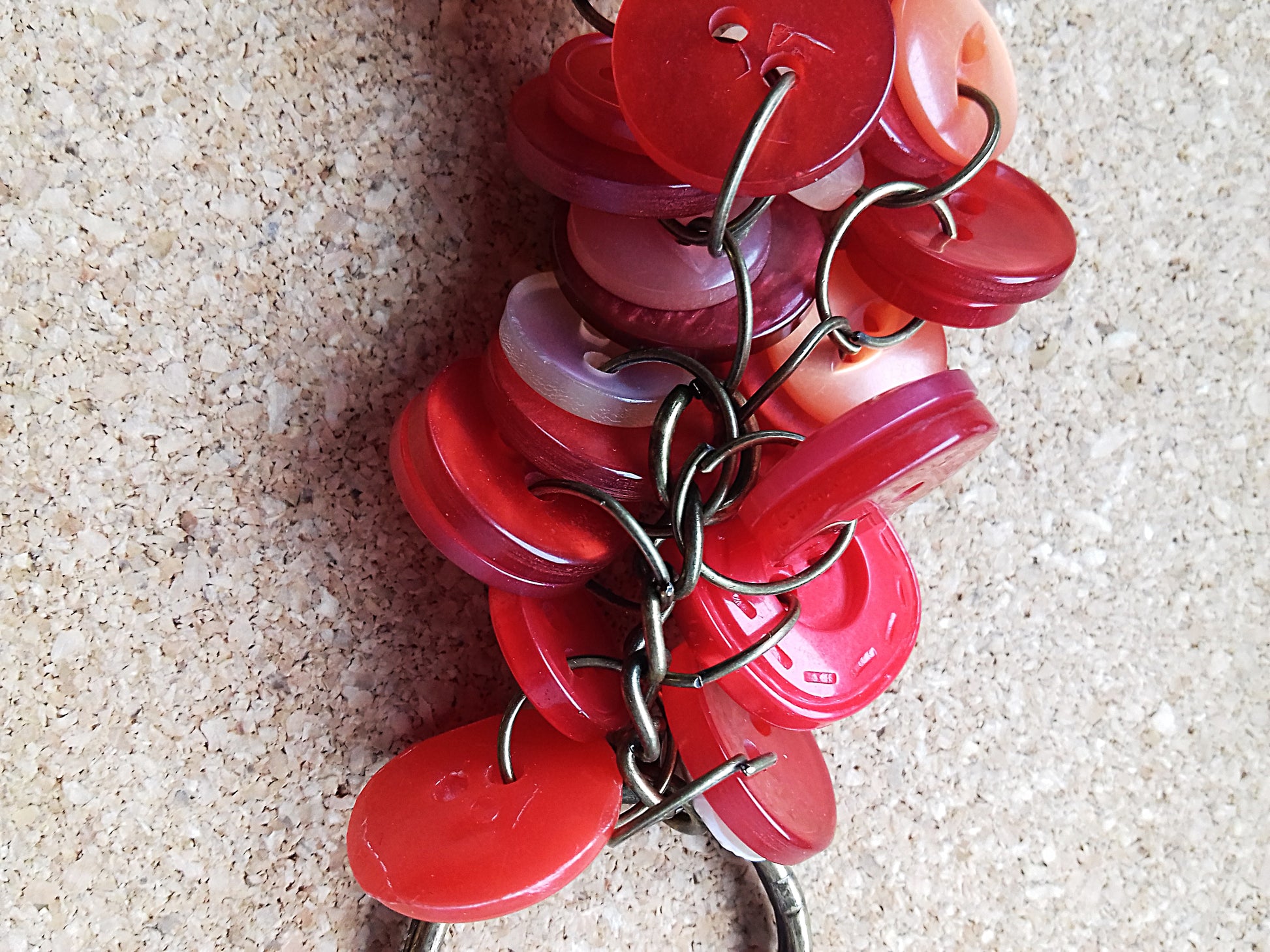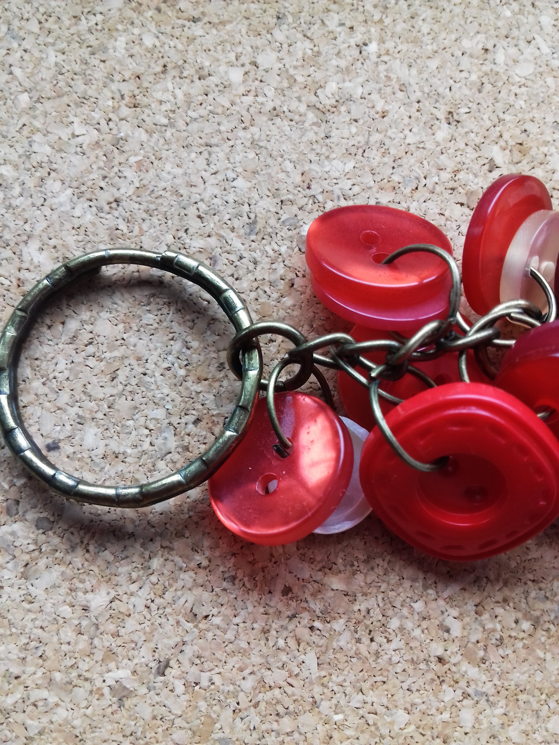 This is a gorgeous little keychain which features a silver chain and vintage buttons in shades of red.