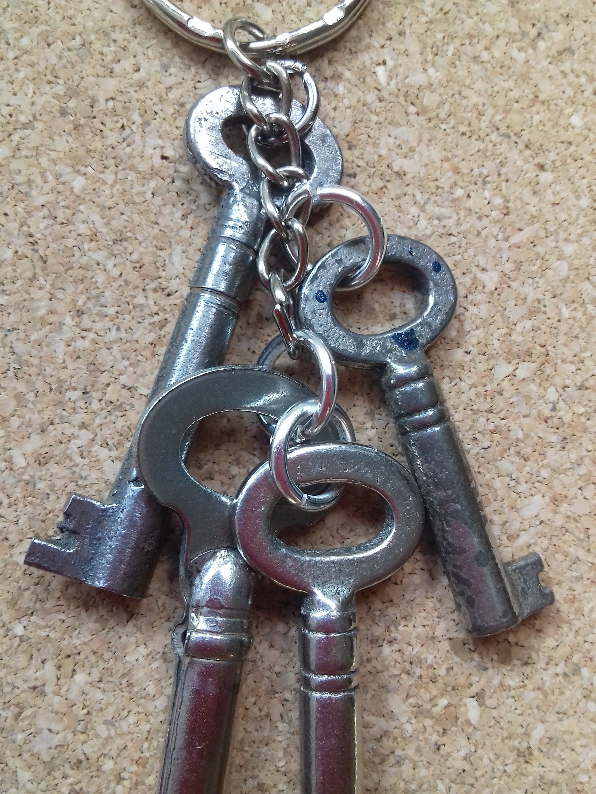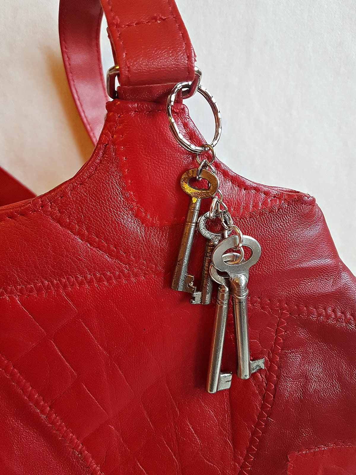 This is a gorgeous yet understated keychain which incorporates four genuine vintage keys on a silver keychain.