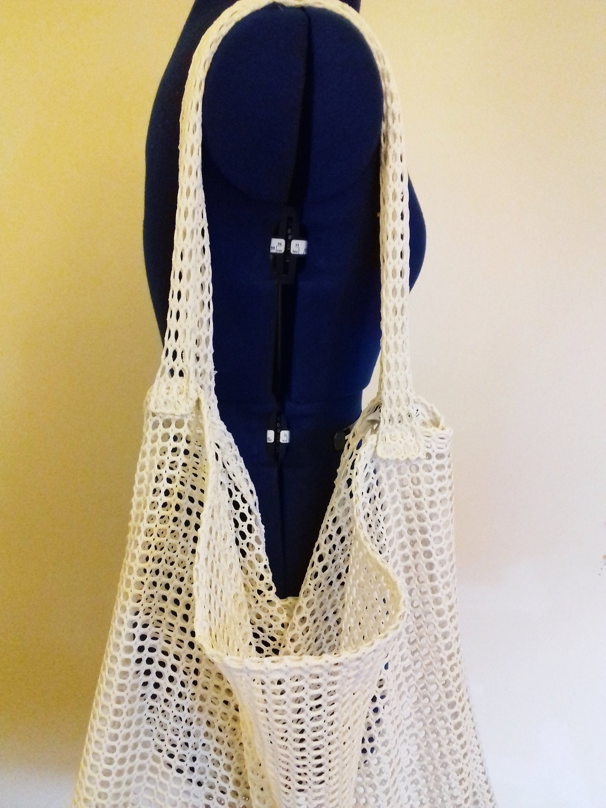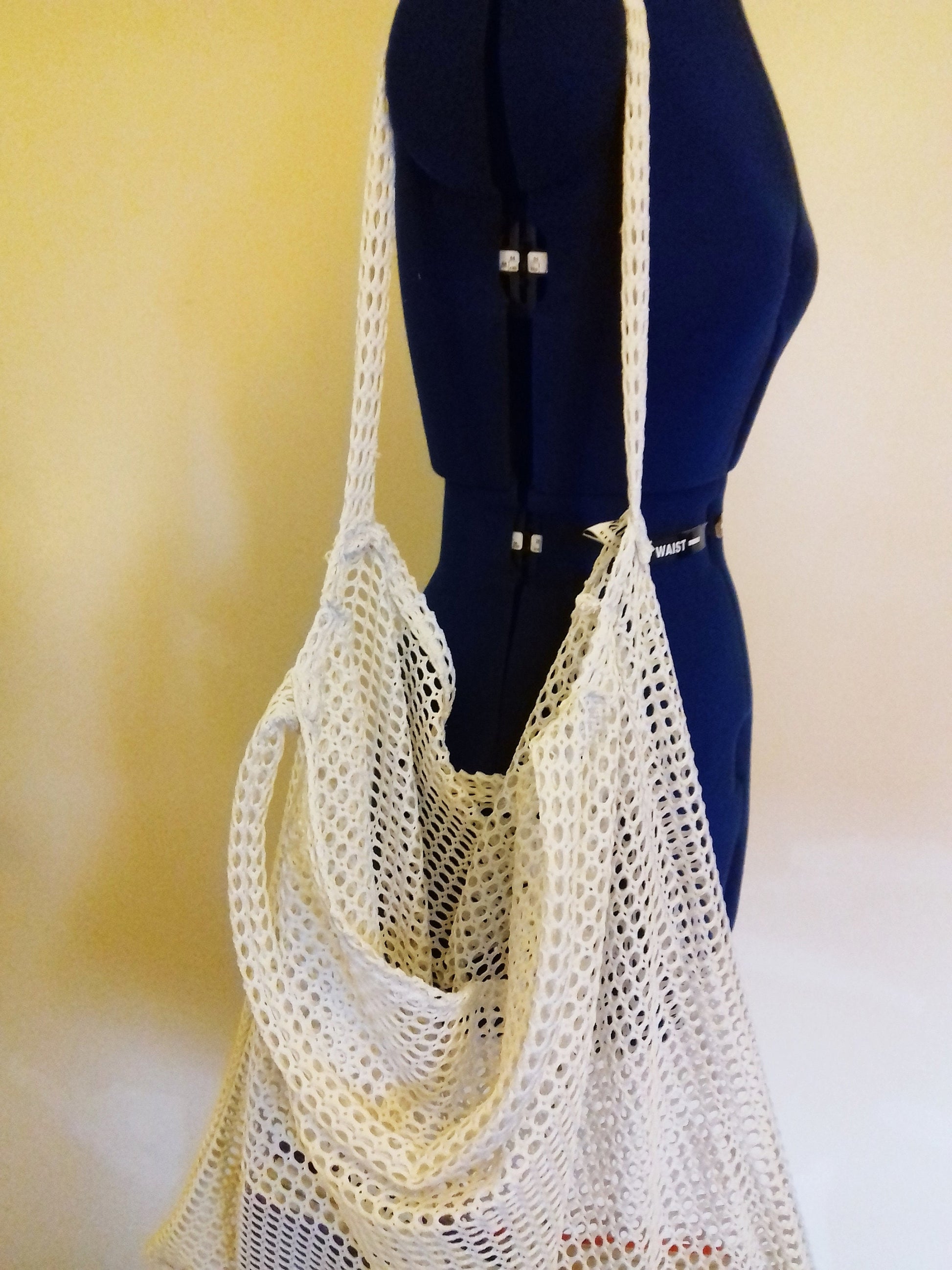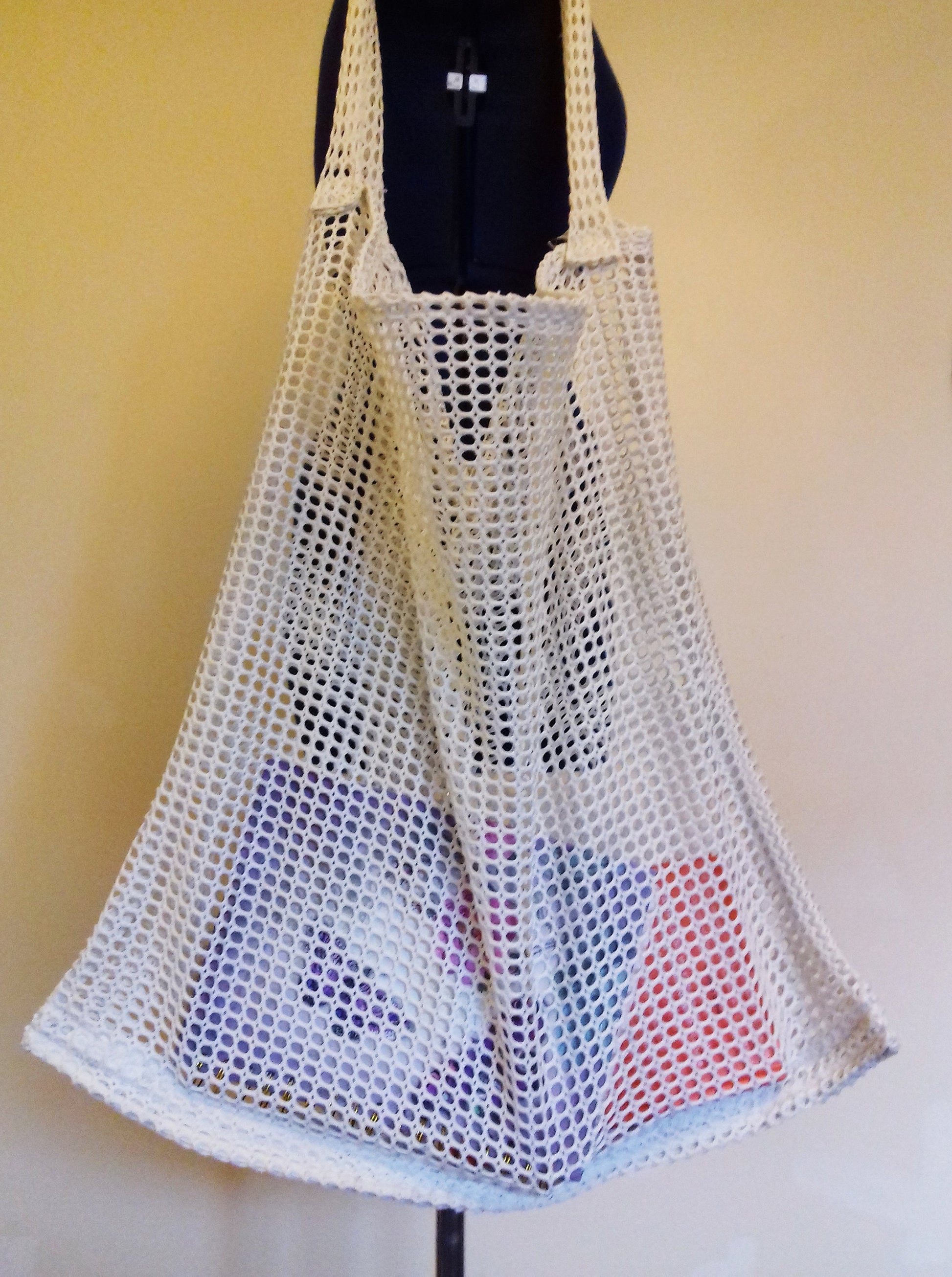 This completely unique bag is made from a lovely soft but strong white string style woven fabric with matching shoulder straps.