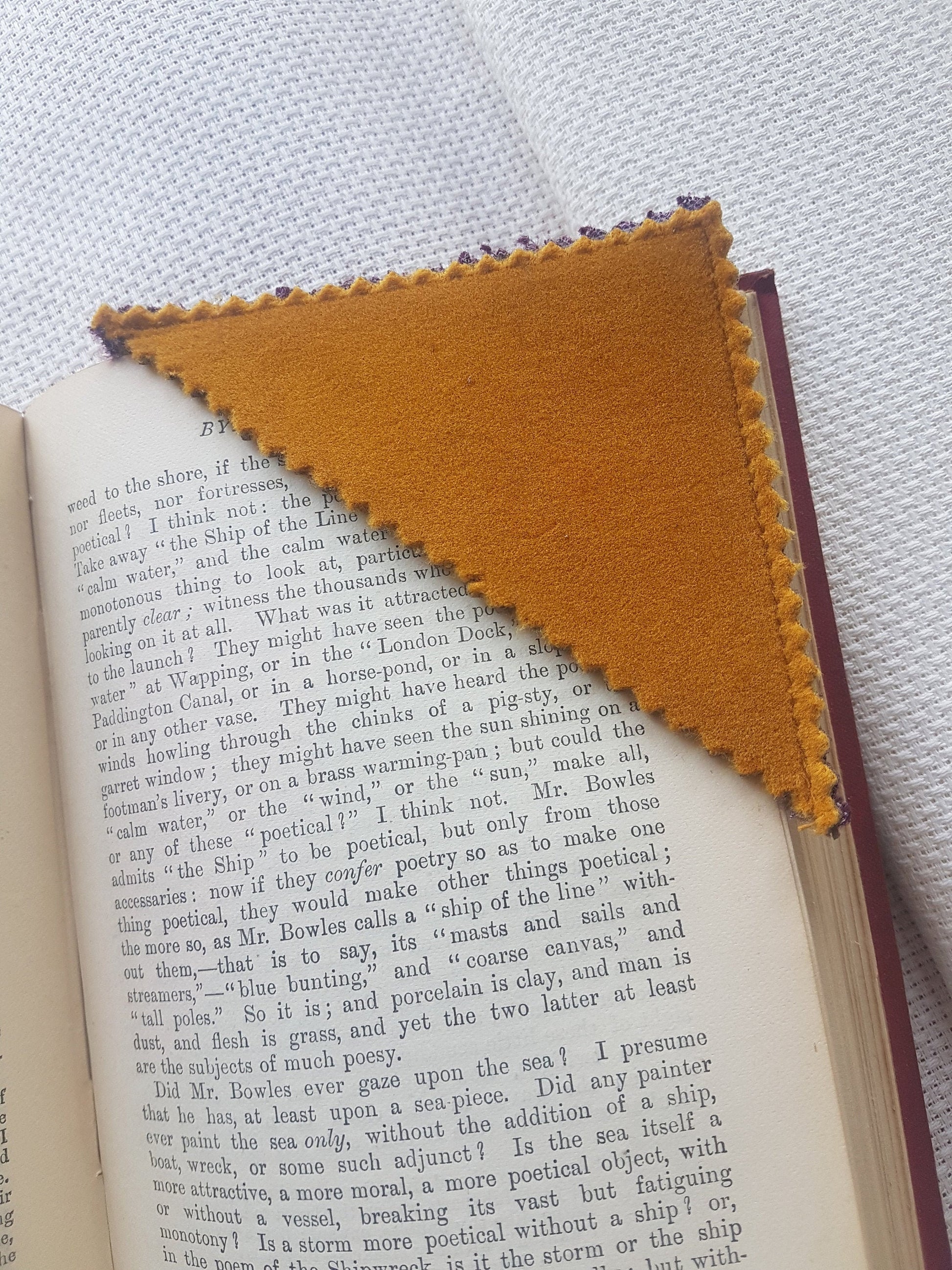 Handmade Velvet Yellow Mustard Blue Corner Bookmark