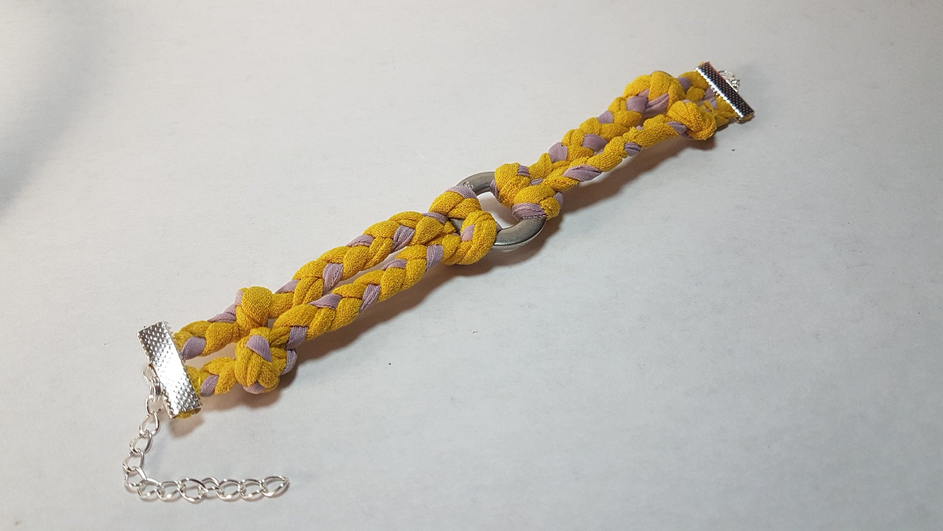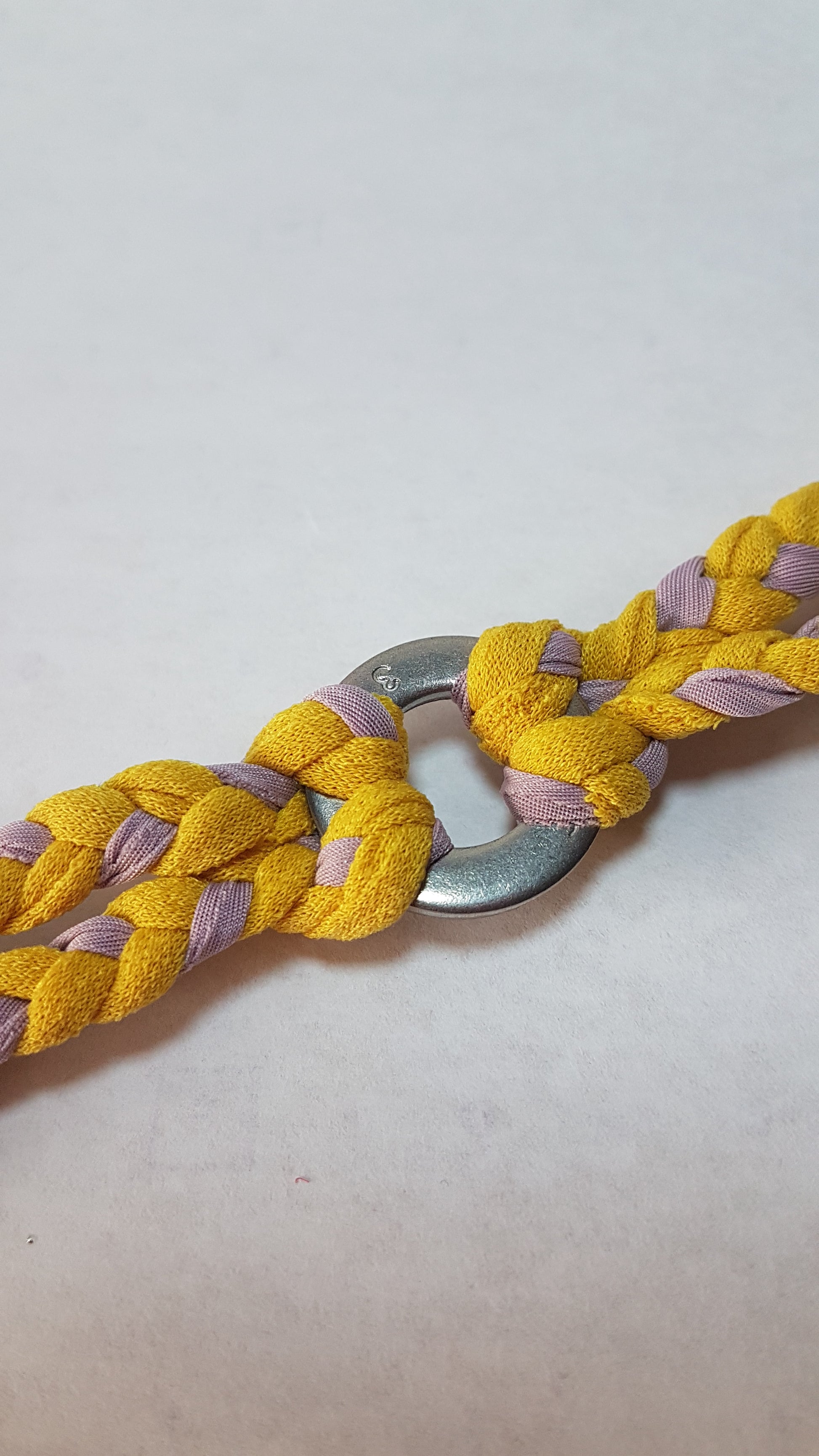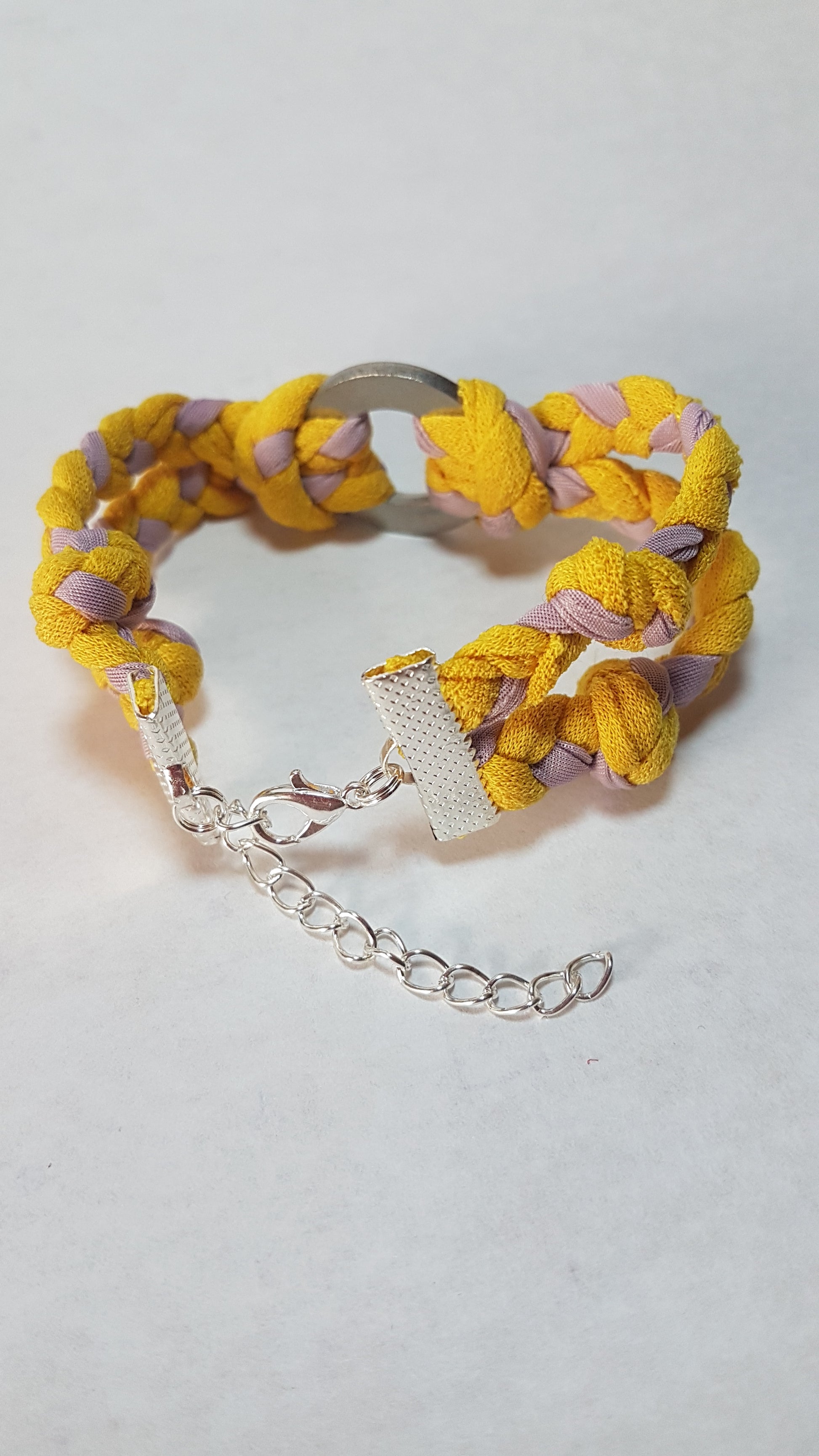 Each design has been made from fabrics left from my dress projects and braided into lengths that are fixed with silver clasps, to create a unique, attractive accessory. Each one is a unique one off and cannot be repeated.