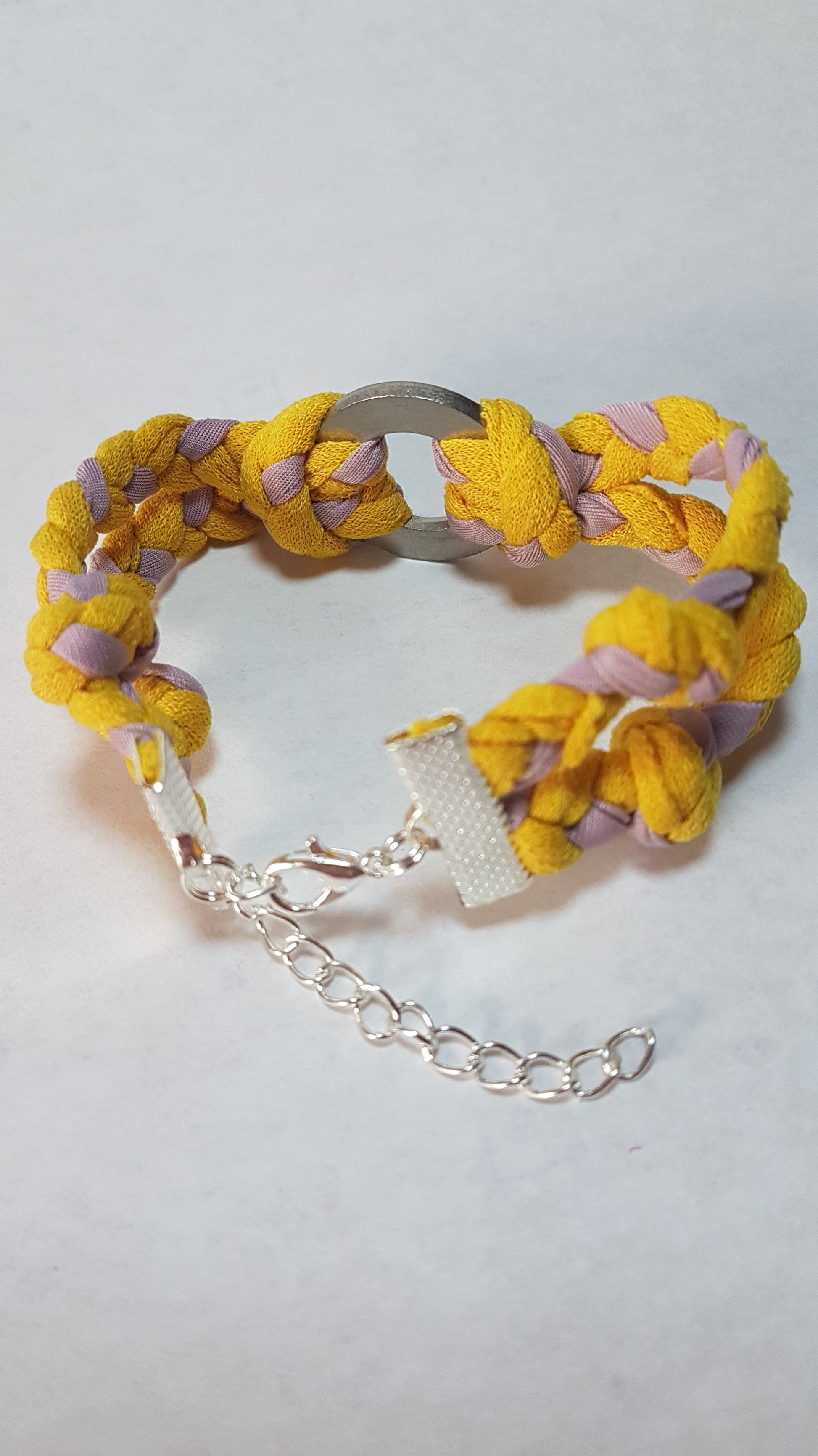 Yellow Pink Braided Two Strand Silver Bracelet