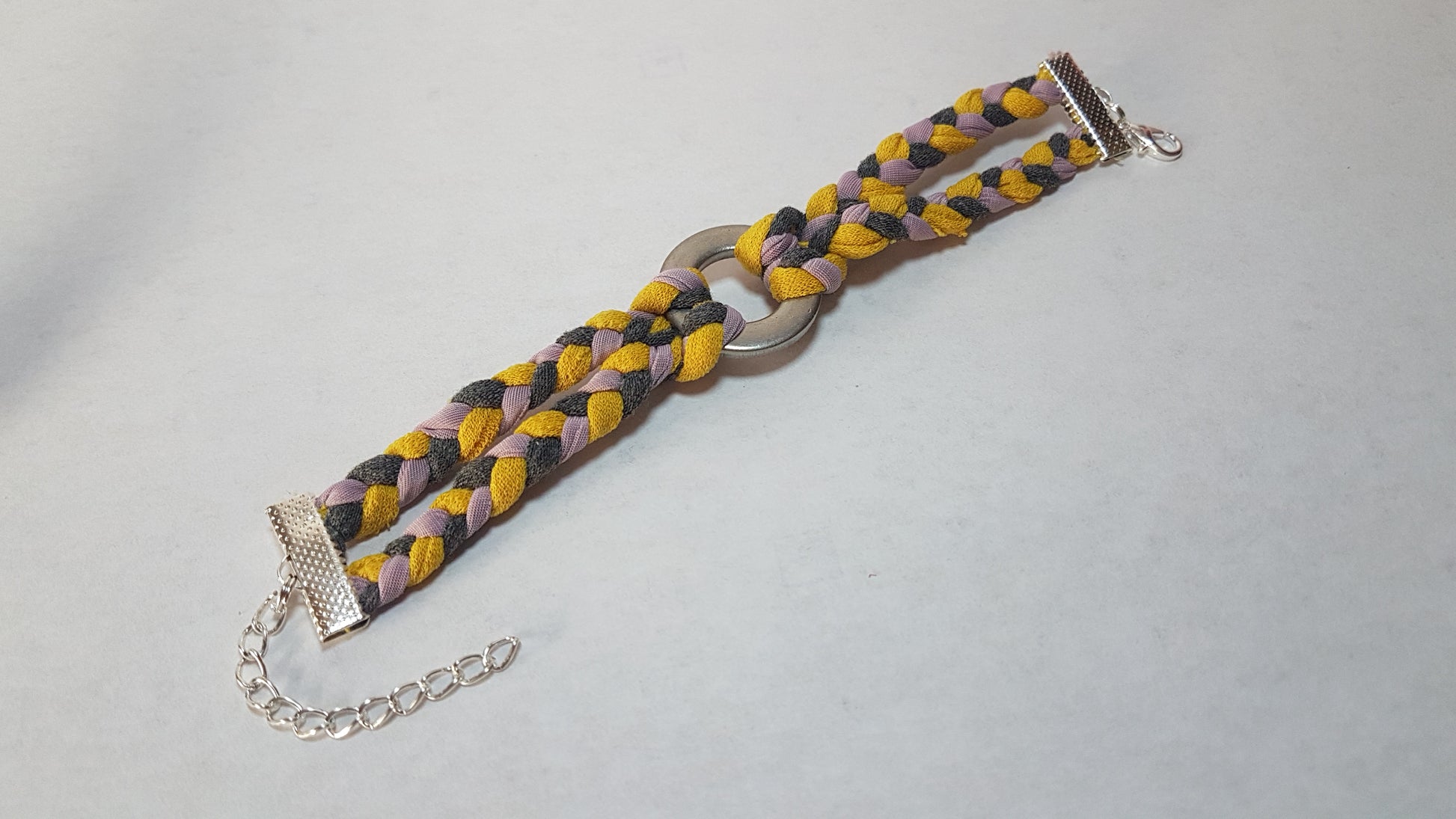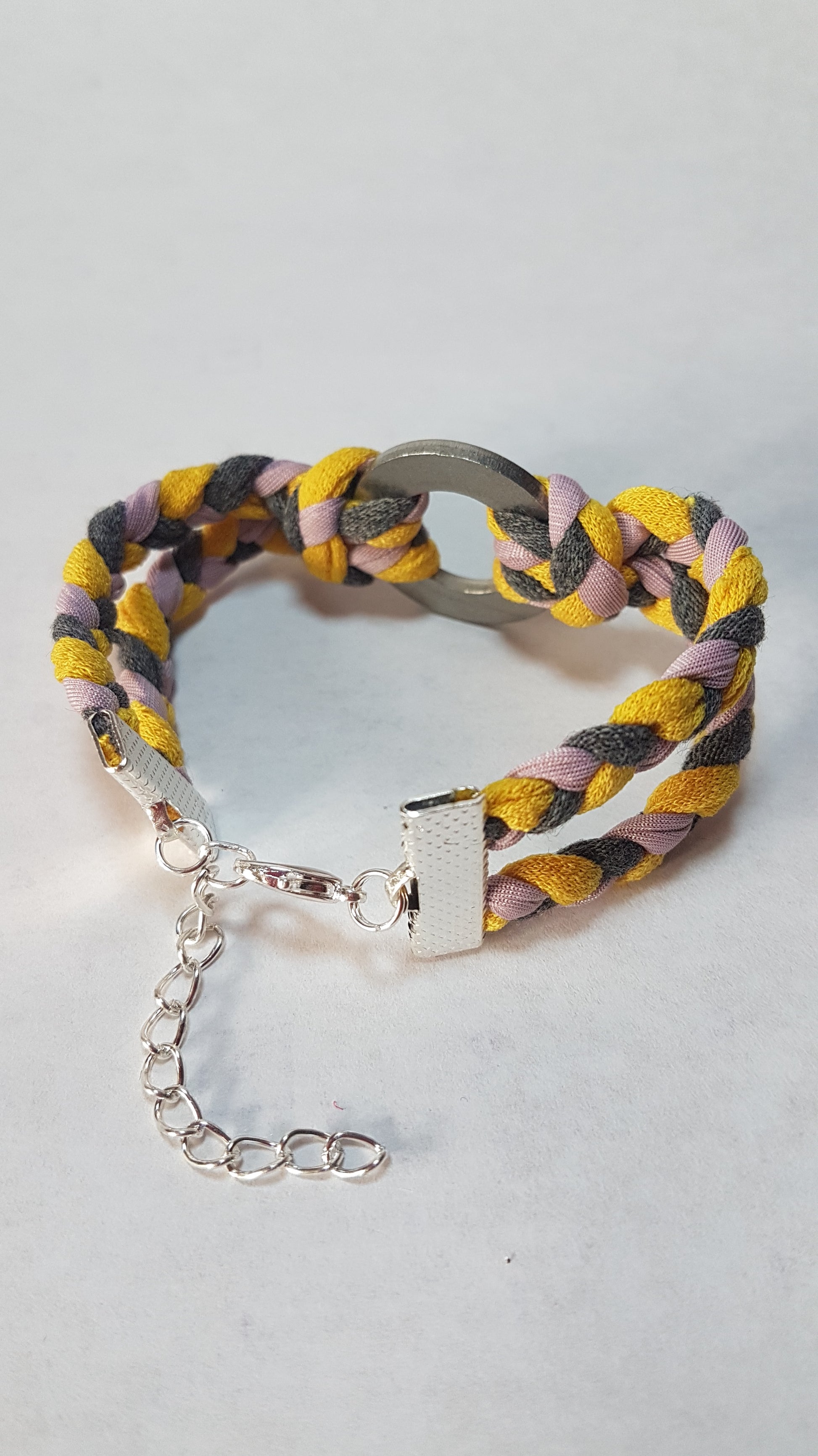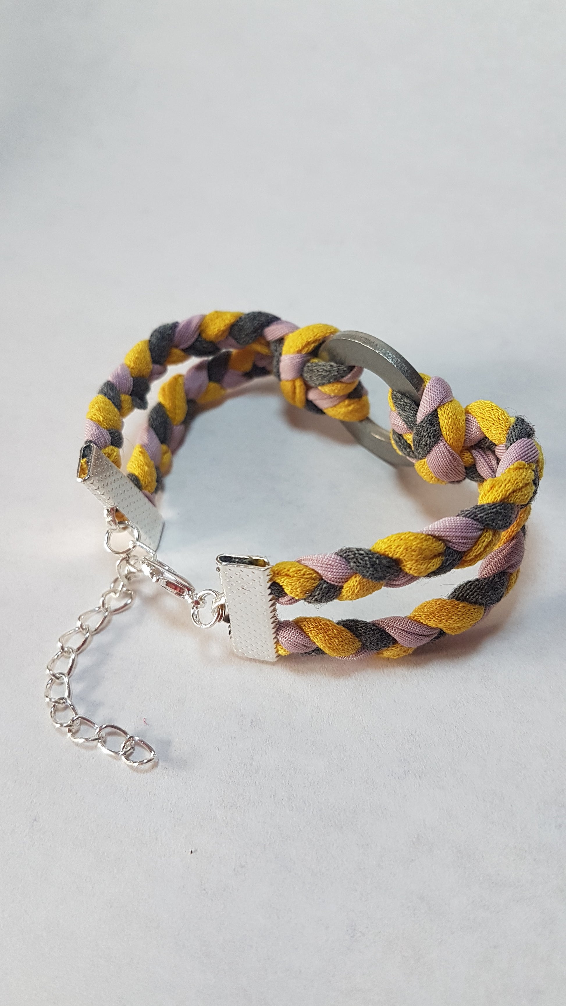 Yellow Pink Grey Braided Two Strand Silver Bracelet