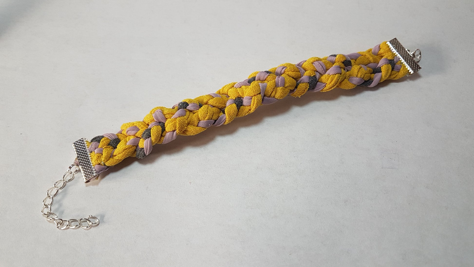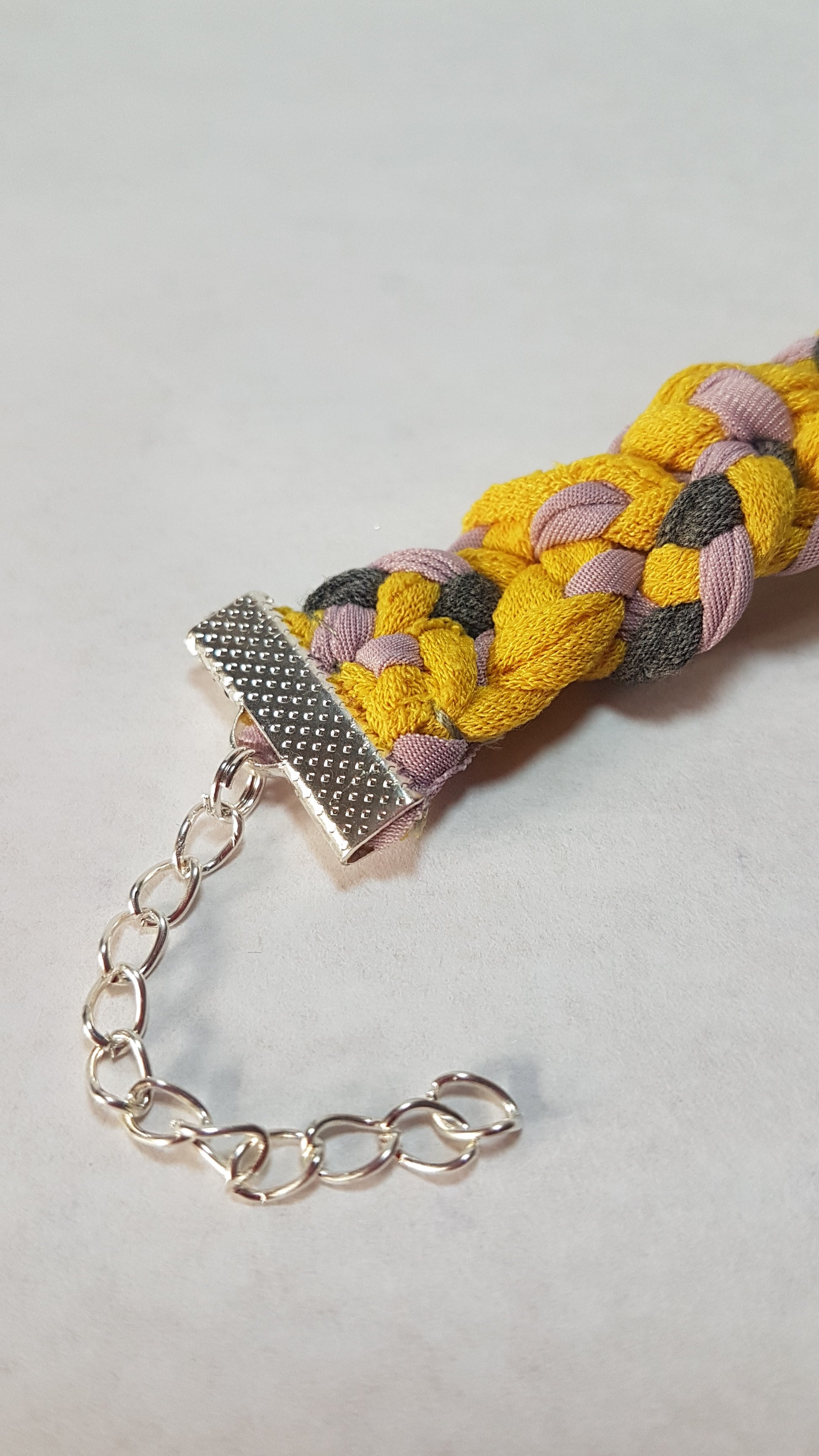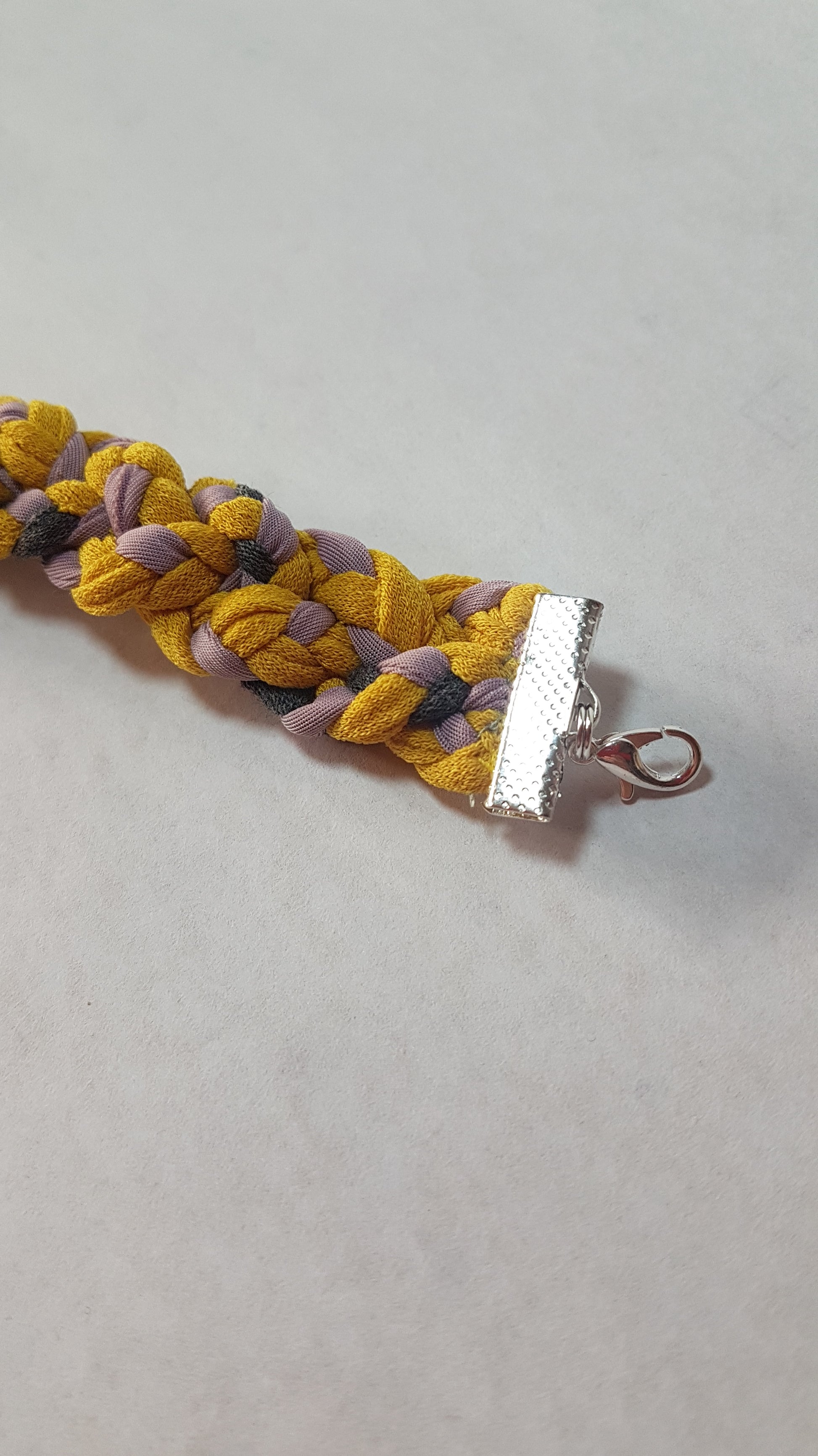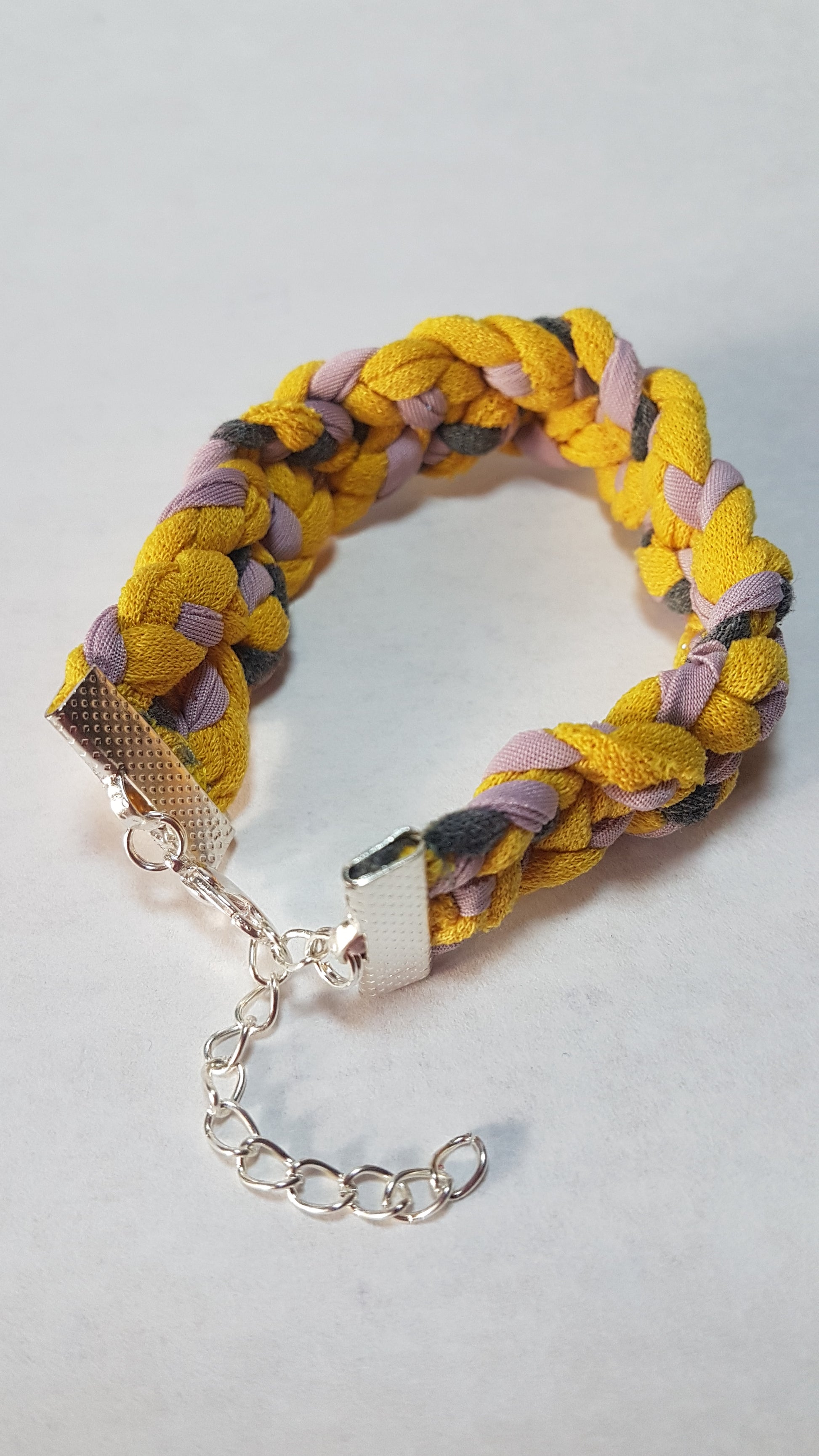 Each design has been made from fabrics left from my dress projects and braided into lengths that are fixed with silver clasps, to create a unique, attractive accessory. Each one is a unique one off and cannot be repeated.